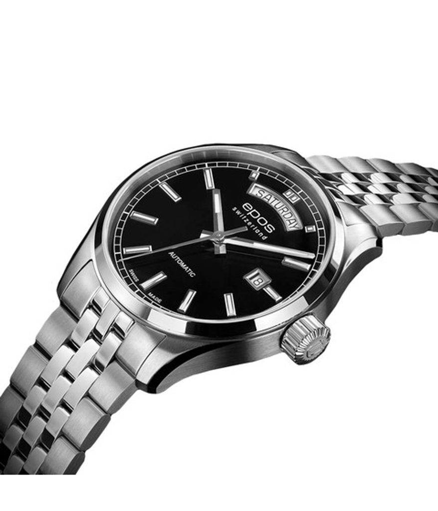 Hodinky Epos Passion DD 3501.142.20.95.30 poháňa švajčiarsky automatický strojček Sellita SW240 s ručným náťahom a rezervou chodu až 38 hodín. Jeho chod možno pozorovať vďaka priehľadnému ciferníku. Ukazovateľ dátumu sa nachádza na tradičnej pozícii 3 hodín, zatiaľ čo na 12. hodine nájdeme ukazovateľ dňa v týždni. Hodinky sú vyrobené v kombinácii oceľového puzdra a oceľového náramku.