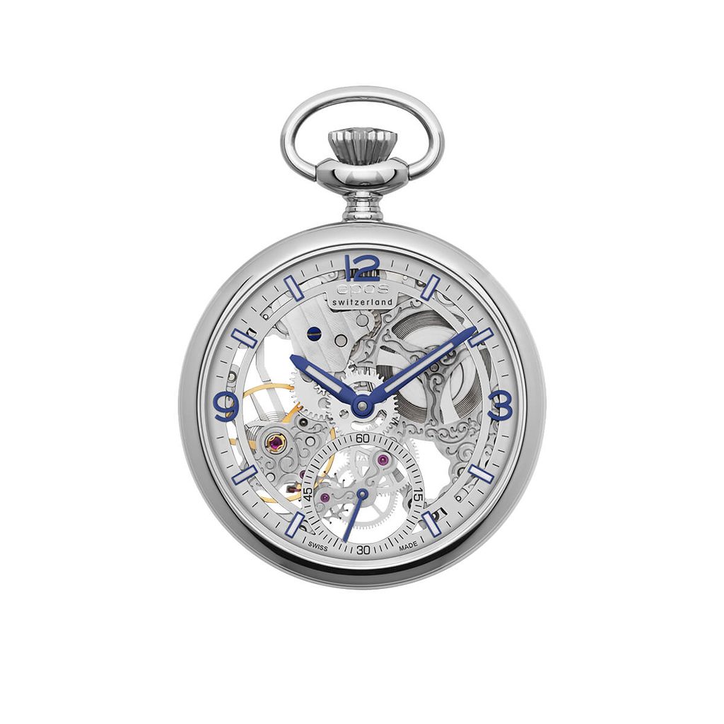 Vreckové hodinky Epos 2003.185.29.58.00 zaujmú svojím moderným vzhľadom a skeletonizovaným ciferníkom.