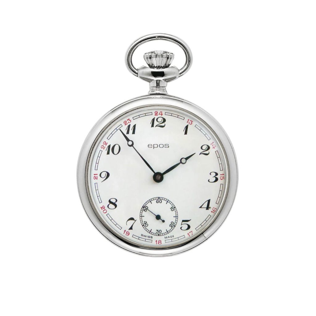 Vreckové hodinky Epos 2003.188.29.30.00 zaujmú elegantným vzhľadom inšpirovaným historickými modelmi vreckových hodiniek a prehľadným bielym ciferníkom.