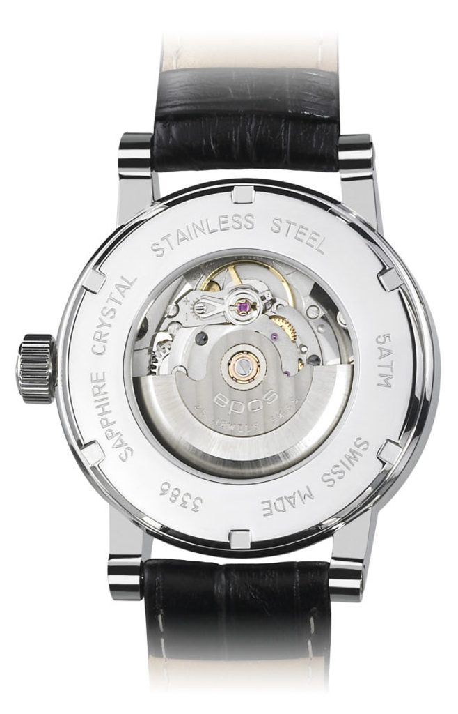 Hodinky Epos Sophistique 3386.132.20.18.25 poháňa automatický strojček ETA 2824 s rezervou chodu až 40 hodín. Hodinky sú vyrobené v kombinácii oceľového puzdra a koženého remienka. Hodinky majú čisté zafírové sklíčko a vodotesnosť 5 ATM, vďaka čomu ich nie je potrebné sťahovať z ruky ani pri bežnom kontakte s vodou, napríklad pri umývaní rúk alebo sprchovaní.