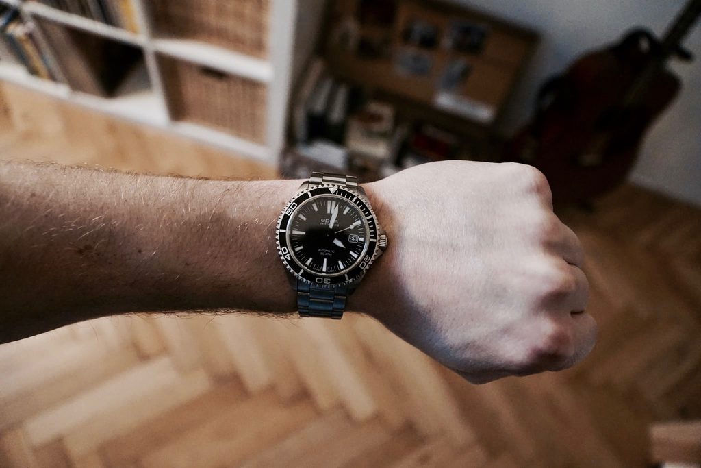 Vďaka priemeru puzdra 41 mm sú hodinky vhodné pre menšie pánske zápästia.