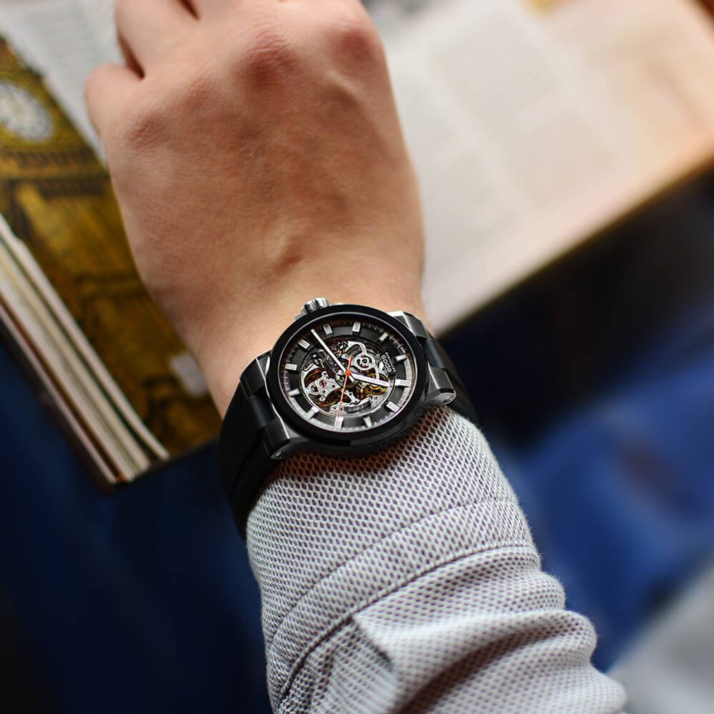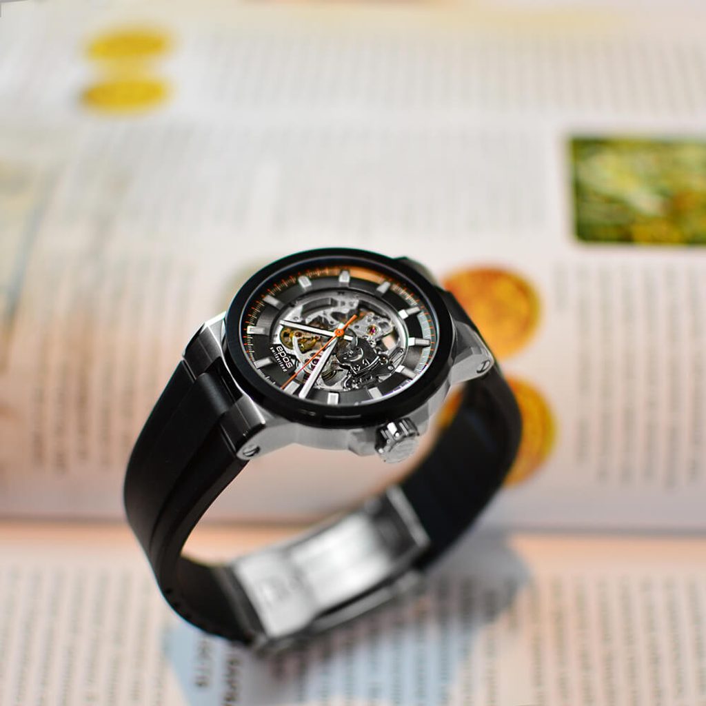 Pánske hodinky Epos Sportive 3442.135.35.14.50 majú základné funkcie športových hodiniek, ale sú ideálne aj na každodenné nosenie. Na prvý pohľad zaujmú priehľadným ciferníkom, cez ktorý je vidieť precízne spracovaný skeletonizovaný automatický strojček Sellita SW200.