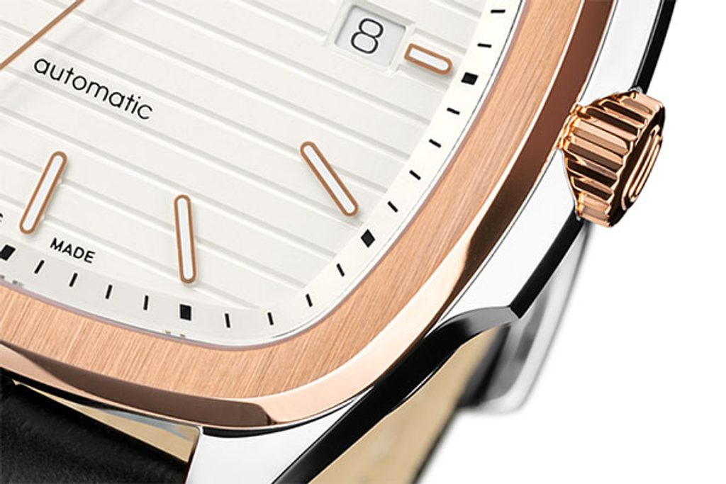 Elegantný a zároveň nadčasový biely lakovaný ciferník chráni zafírové sklíčko, ktoré je mimoriadne odolné proti poškriabaniu. Ručičky a indexy majú ručne nanesenú luminiscenčnú vrstvu, ktorá uľahčuje čítanie času za zhoršených svetelných podmienok. Vďaka vodotesnosti 50 m (5 ATM) hodinky odolajú napríklad dažďu alebo sprchovaniu.