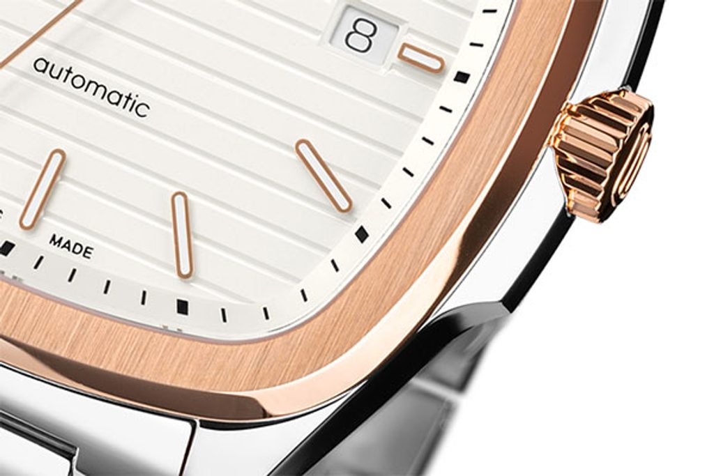 Elegantný a zároveň nadčasový biely lakovaný ciferník chráni zafírové sklíčko, ktoré je mimoriadne odolné proti poškriabaniu. Ručičky a indexy majú ručne nanesenú luminiscenčnú vrstvu, ktorá uľahčuje čítanie času za zhoršených svetelných podmienok. Vďaka vodotesnosti 50 m (5 ATM) hodinky odolajú napríklad dažďu alebo sprchovaniu.