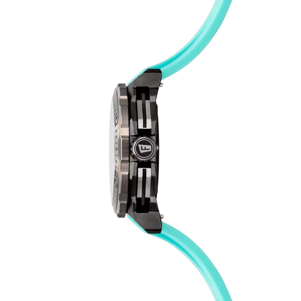 Puzdro hodiniek s priemerom 45,5 mm je vyrobené z nehrdzavejúcej ocele 316L, ktorá zaručuje pevnosť a odolnosť, zatiaľ čo silikónový remienok ponúka pohodlné a flexibilné nosenie pri akejkoľvek aktivite. Vnútri puzdra sa nachádza quartzový strojček Miyota M0S20 s presnosťou chodu ±20 s za mesiac, ktorý umožňuje presné meranie času.