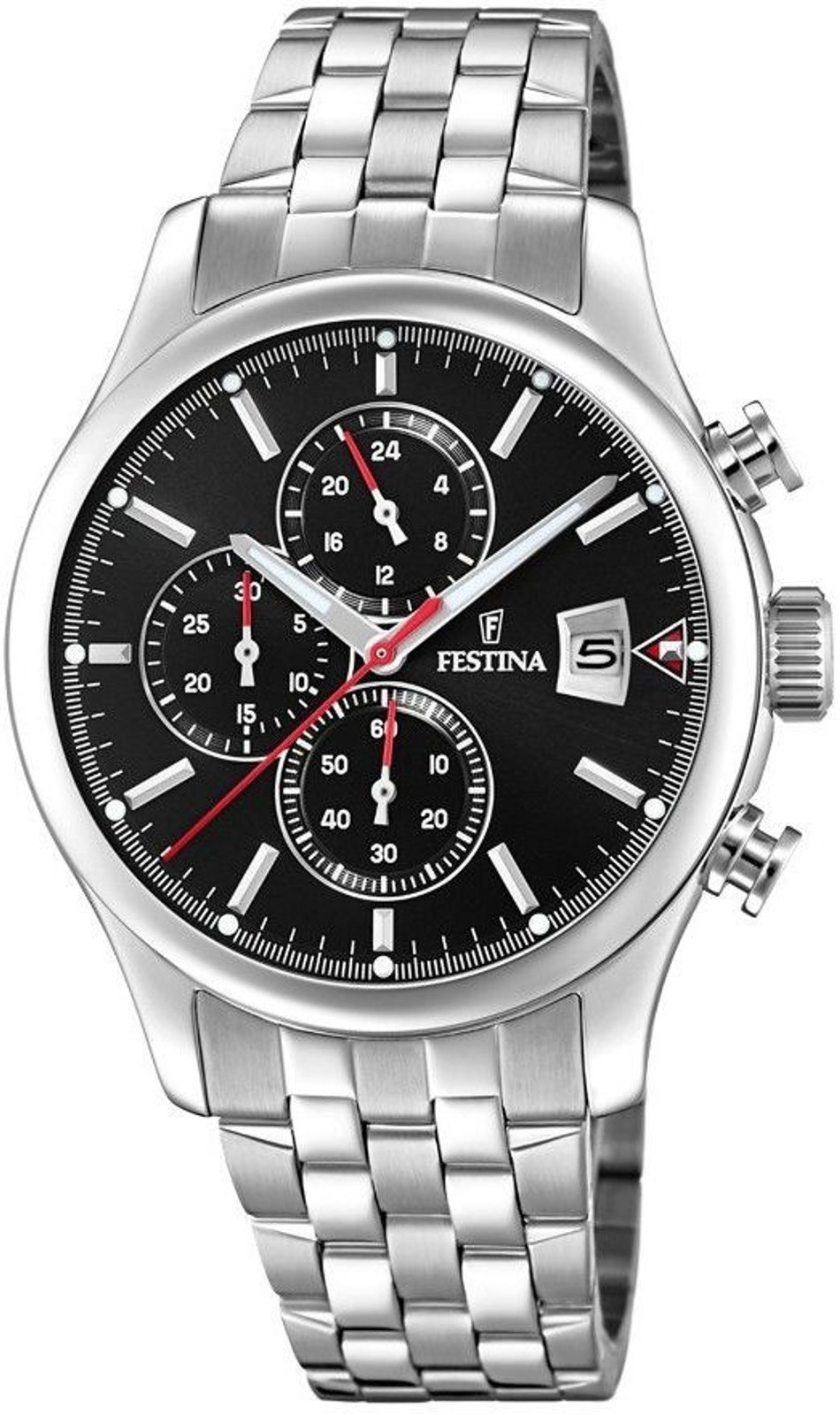 Hodinky Festina F20374/3 majú minerálne sklíčko a sú vyrobené v celooceľovom vyhotovení (puzdro a náramok). Z hľadiska funkcií hodinky ponúkajú stopky (chronograf), ukazovateľ dátumu a subciferník s 24-hodinovým počítadlom.