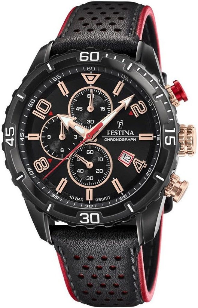 Hodinky Festina Chrono Sport 20519/4 majú minerálne sklíčko a sú vyrobené v kombinácii oceľového puzdra s PVD povlakom a športového koženého remienka. Z hľadiska funkcií hodinky ponúkajú ukazovateľ dátumu a stopky.
