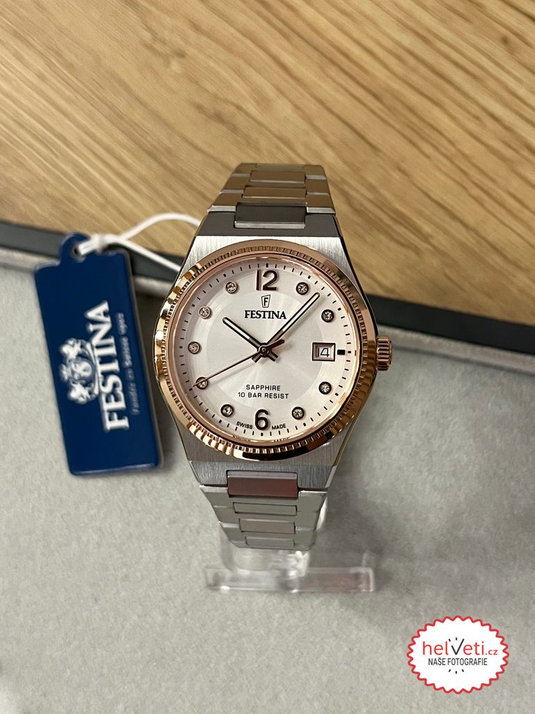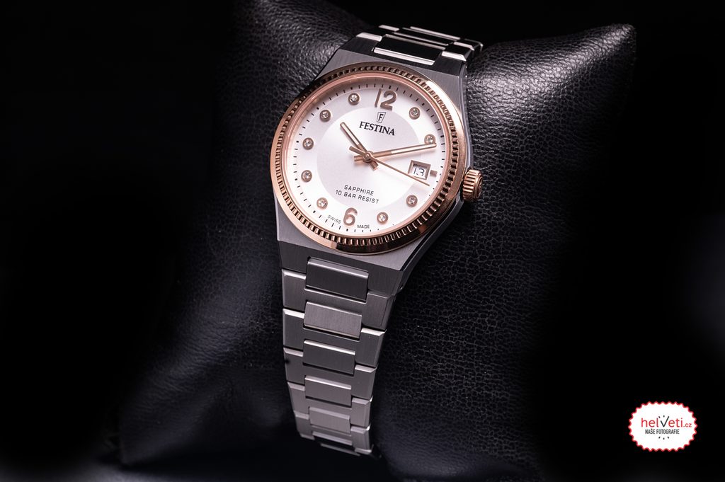 Predovšetkým dámsky model Festina F20037 ponúka vysoko elegantný vzhľad, ktorý sa bude hodiť aj k spoločenským šatám, zafírové sklíčko odolné voči akémukoľvek poškriabaniu a vodotesnosť 10 ATM, vďaka ktorej zvládnu aj plávanie.