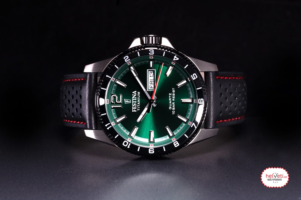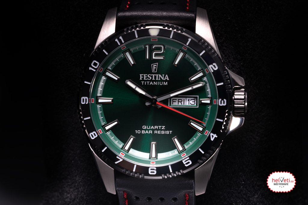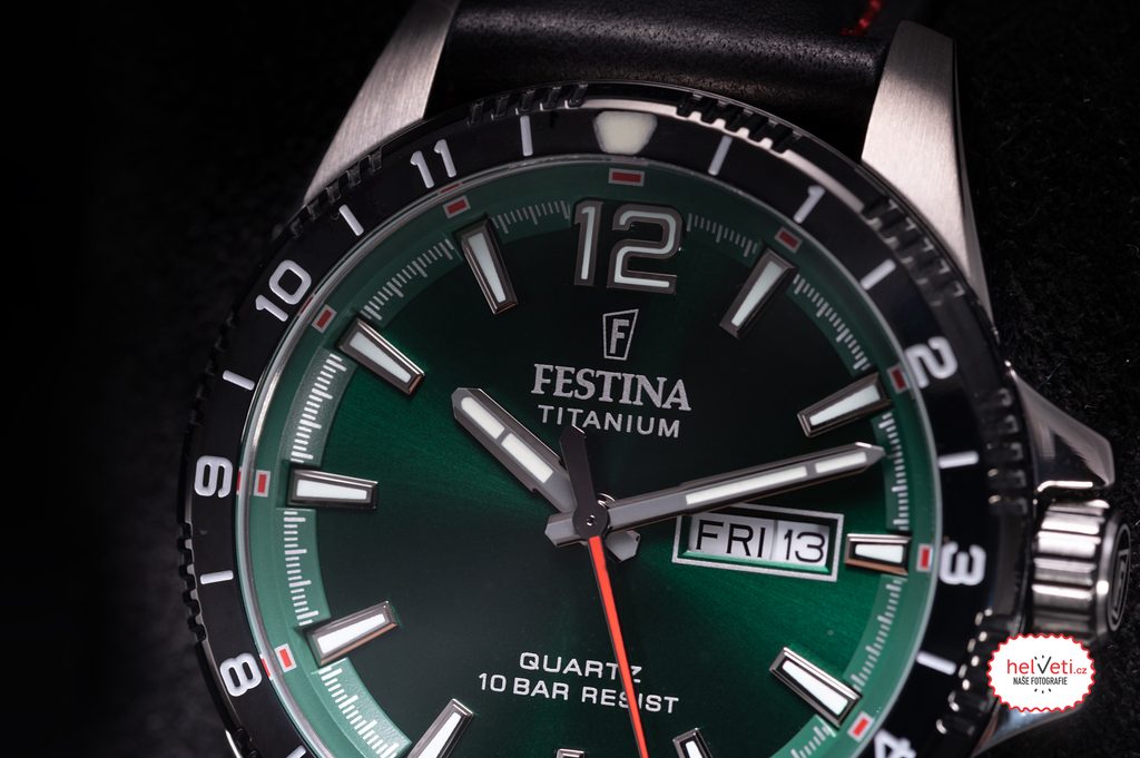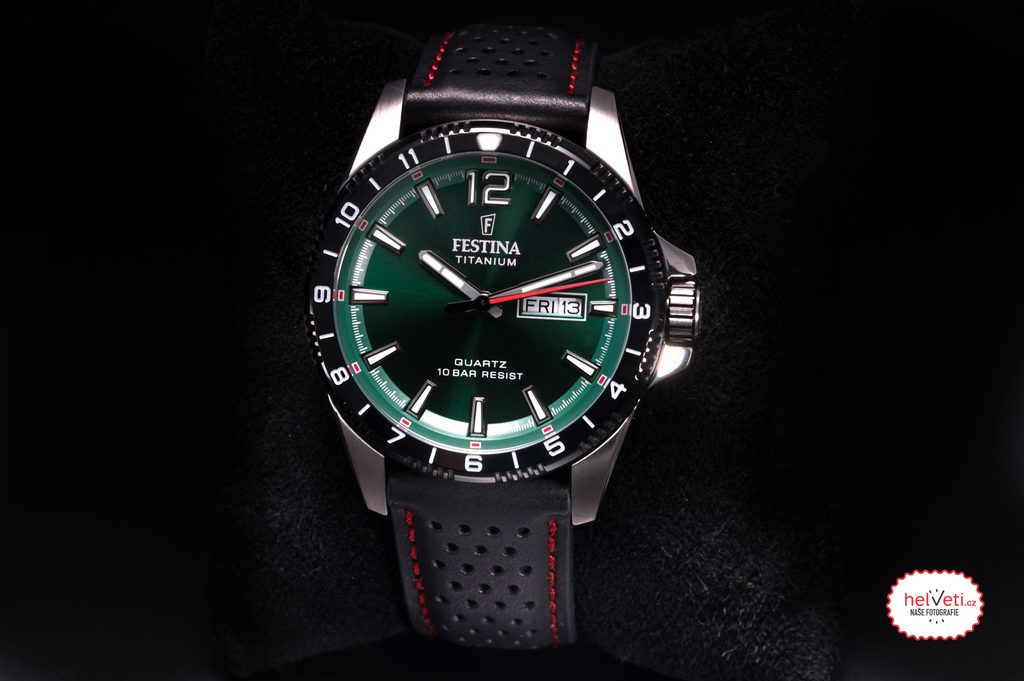 Celá kolekcia Festina Titanium Date zaujme elegantným farebným prevedením lunety aj ciferníka. Minerálne sklíčko zakryje zaujímavý športový ciferník s jemnými detailmi. Na 43 mm široké titánové puzdro nadväzuje kožený remienok so športovým dizajnom.