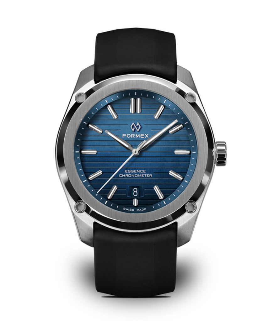 Švajčiarske hodinky Formex Essence FortyOne Automatic Chronometer Blue na prvý pohľad zaujmú ikonickým ciferníkom s horizontálnym frézovaním, ktorý vo svetle vytvára dojem hĺbky a zaujímavý efekt. Puzdro podčiarkuje moderný vzhľad hodiniek, ktorý spája technickú dokonalosť s univerzálnym štýlom vhodným na každú príležitosť. Modely Formex Essence si získali obľubu medzi milovníkmi hodiniek vďaka kombinácii čistého dizajnu, vynikajúcej čitateľnosti a špičkového spracovania.