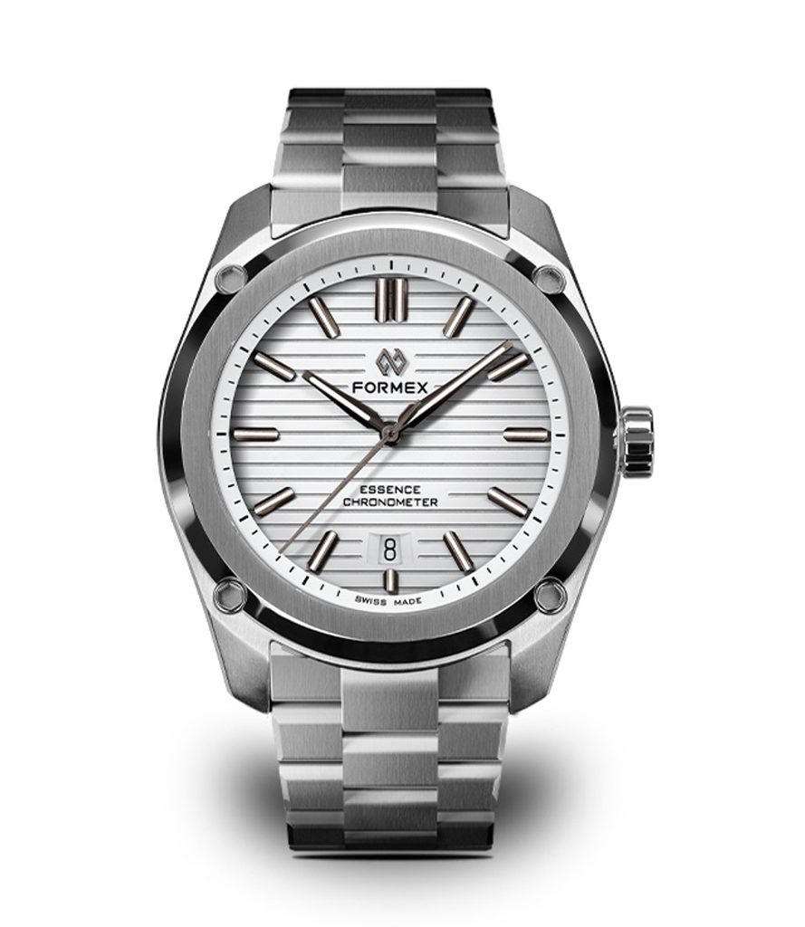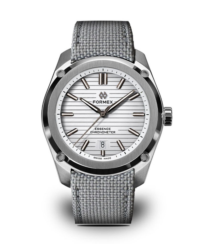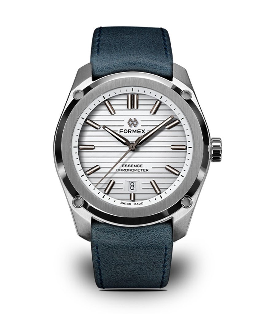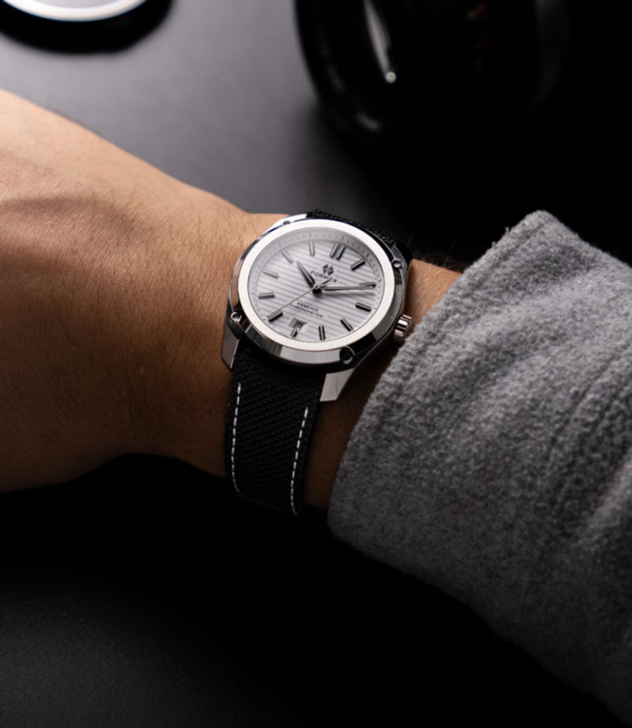 Švajčiarske hodinky Formex Essence FortyOne Automatic Chronometer White na prvý pohľad zaujmú ikonickým ciferníkom s horizontálnym frézovaním, ktorý vo svetle vytvára dojem hĺbky a zaujímavý efekt. Puzdro podčiarkuje moderný vzhľad hodiniek, ktorý spája technickú dokonalosť s univerzálnym štýlom vhodným na každú príležitosť. Modely Formex Essence si získali obľubu medzi milovníkmi hodiniek vďaka kombinácii čistého dizajnu, vynikajúcej čitateľnosti a špičkového spracovania.