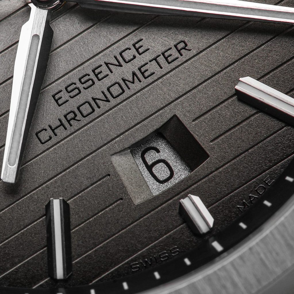 Medzi klasické charakteristické znaky hodiniek Formex Essence FortyThree Automatic Chronometer Degrade patrí výrazný vrúbkovaný ciferník, systém zavesenia puzdra, vyššia vodotesnosť a jemná mikroregulovateľná spona. Priehľadný ciferník chráni zafírové sklíčko s vnútornou antireflexnou vrstvou a vysokou odolnosťou proti poškriabaniu. Zafír bol použitý aj na ciferník, cez ktorý možno pozorovať činnosť zdobeného strojčeka s modrými skrutkami. Lepšiu čitateľnosť za zhoršených svetelných podmienok zabezpečuje luminiscencia (BGW9 Super-LumiNova) umiestnená na ručičkách a indexoch. Práve ryhovaný ciferník a indexy vo vysokom lesku pôsobia veľmi zaujímavo. Celkový dojem podčiarkuje citlivo navrhnutý ukazovateľ dátumu na pozícii 6 hodín. Na hodinkách najviac oceníte ich všestrannosť; súbor funkcií ich predurčuje na použitie pri športe, vo vode, ale aj na každodenné používanie.