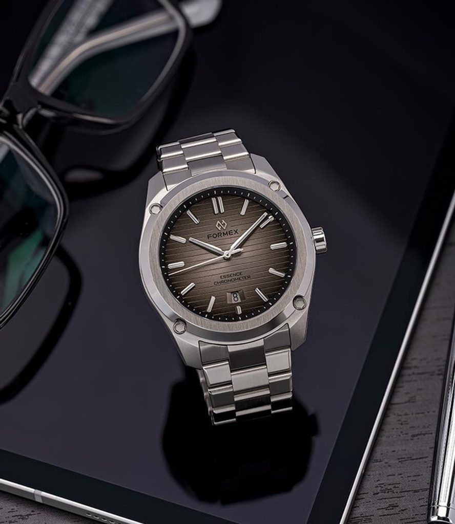 Švajčiarske hodinky Formex Essence FortyThree Automatic Chronometer Degrade na prvý pohľad zaujmú výrazným kartáčovaným puzdrom s efektnými leštenými plochami a výrazne štruktúrovaným ciferníkom. Ide o moderné poňatie univerzálnych hodiniek vhodných na každú príležitosť, ktoré sa vyznačujú jednoduchými líniami a skvelou prehľadnosťou. Vďaka celkovému súboru funkcií sú modely Formex Essence veľmi obľúbené u priaznivcov hodiniek.