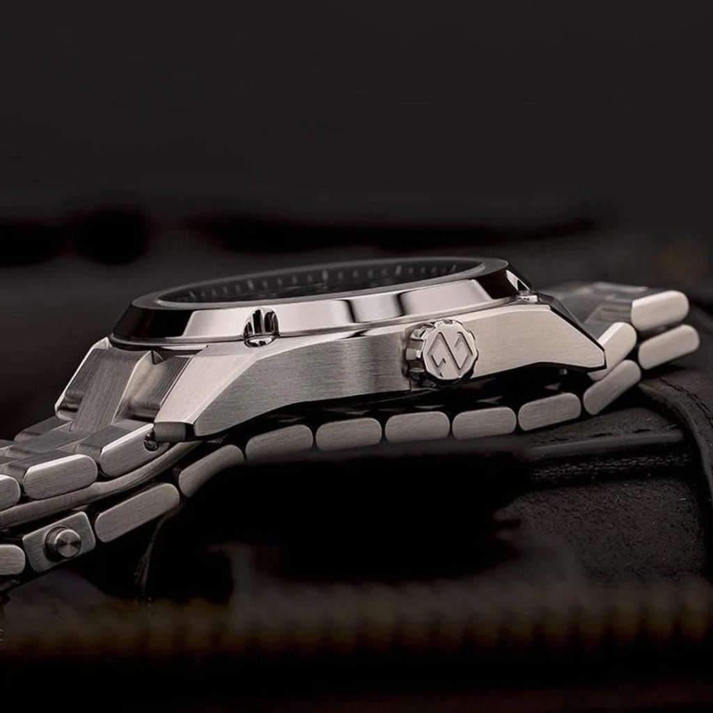 Hodinky je možné dodať v kombinácii s oceľovým náramkom ukončeným motýľovou sponou s predĺžením 4 mm alebo s koženým/gumovým remienkom ukončeným karbónovou skladacou sponou s inovatívnym systémom jemného mikroregulovania v rozsahu 7 mm. Úprava dĺžky sa jednoducho vykonáva stlačením bočného tlačidla bez nutnosti sťahovania hodiniek z ruky.