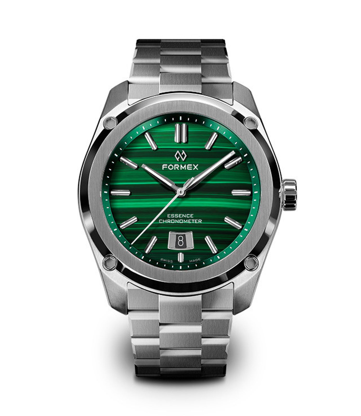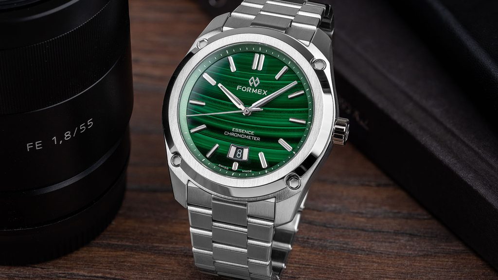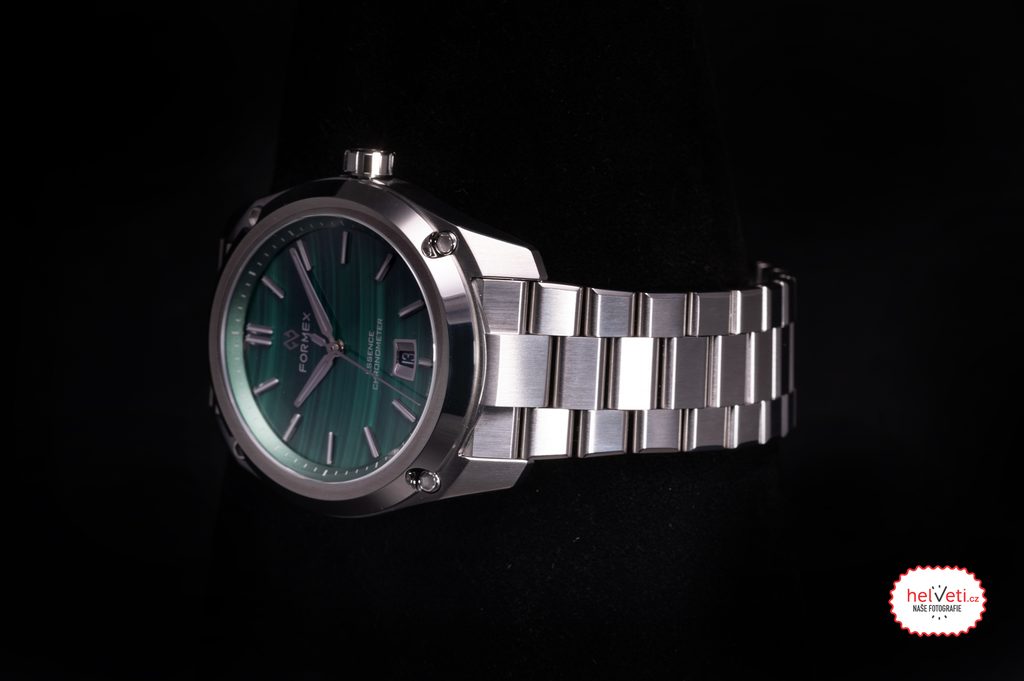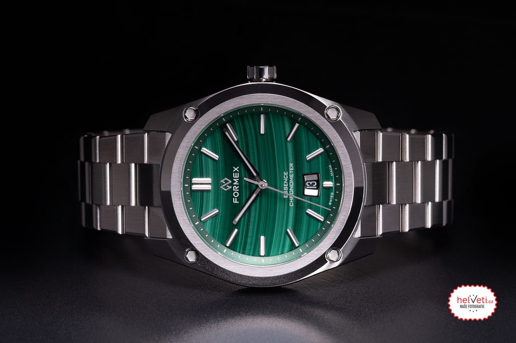 Švajčiarske hodinky Formex Essence FortyThree Automatic Chronometer Malachite Steel Bracelet na prvý pohľad zaujmú jedinečným malachitovým ciferníkom a výrazným kartáčovaným puzdrom s efektnými leštenými plochami. Ide o moderné poňatie univerzálnych hodiniek vhodných na každú príležitosť, ktoré sa vyznačujú jednoduchými líniami a skvelou prehľadnosťou. Vďaka celkovému súboru funkcií sú modely Formex Essence veľmi obľúbené u priaznivcov hodiniek.