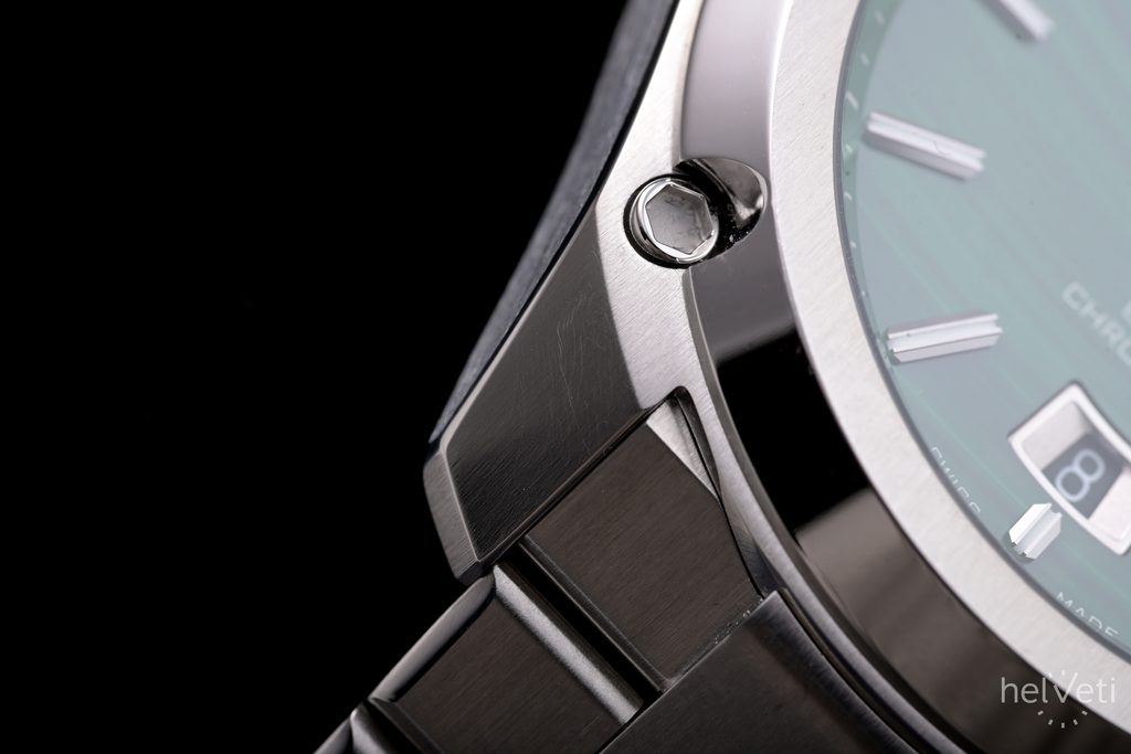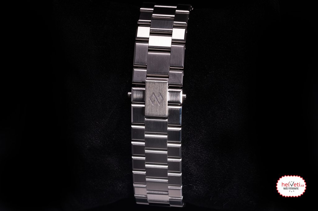 Puzdro dopĺňa oceľový náramok ukončený motýľovým zapínaním, ktorý sa dá predĺžiť o 4 mm.