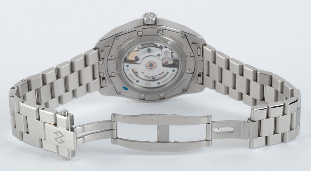 Hodinky je možné dodať v kombinácii s oceľovým náramkom ukončeným motýľovou sponou s predĺžením 4 mm alebo s koženým/gumovým remienkom ukončeným karbónovou skladacou sponou s inovatívnym systémom jemného mikroregulovania v rozsahu 7 mm. Úprava dĺžky sa jednoducho vykonáva stlačením bočného tlačidla bez nutnosti sťahovania hodiniek z ruky.