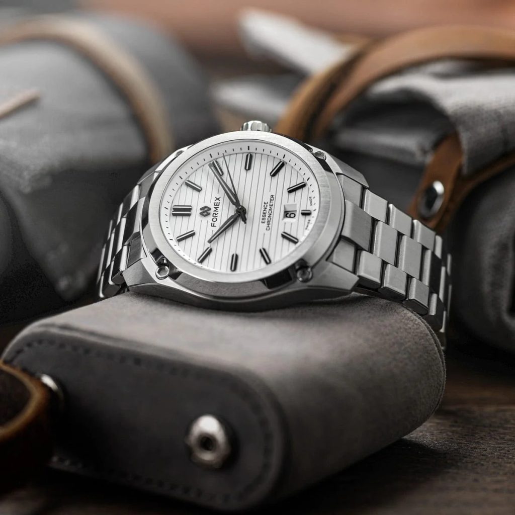 Švajčiarske hodinky Formex Essence FortyThree Automatic Chronometer White na prvý pohľad zaujmú výrazným kartáčovaným puzdrom s efektnými leštenými plochami a výrazne štruktúrovaným ciferníkom. Ide o moderný pohľad na univerzálne hodinky vhodné na každú príležitosť, ktoré sa vyznačujú jednoduchými líniami a skvelou prehľadnosťou. Vďaka celkovému súboru funkcií sú modely Formex Essence veľmi obľúbené u priaznivcov hodiniek.