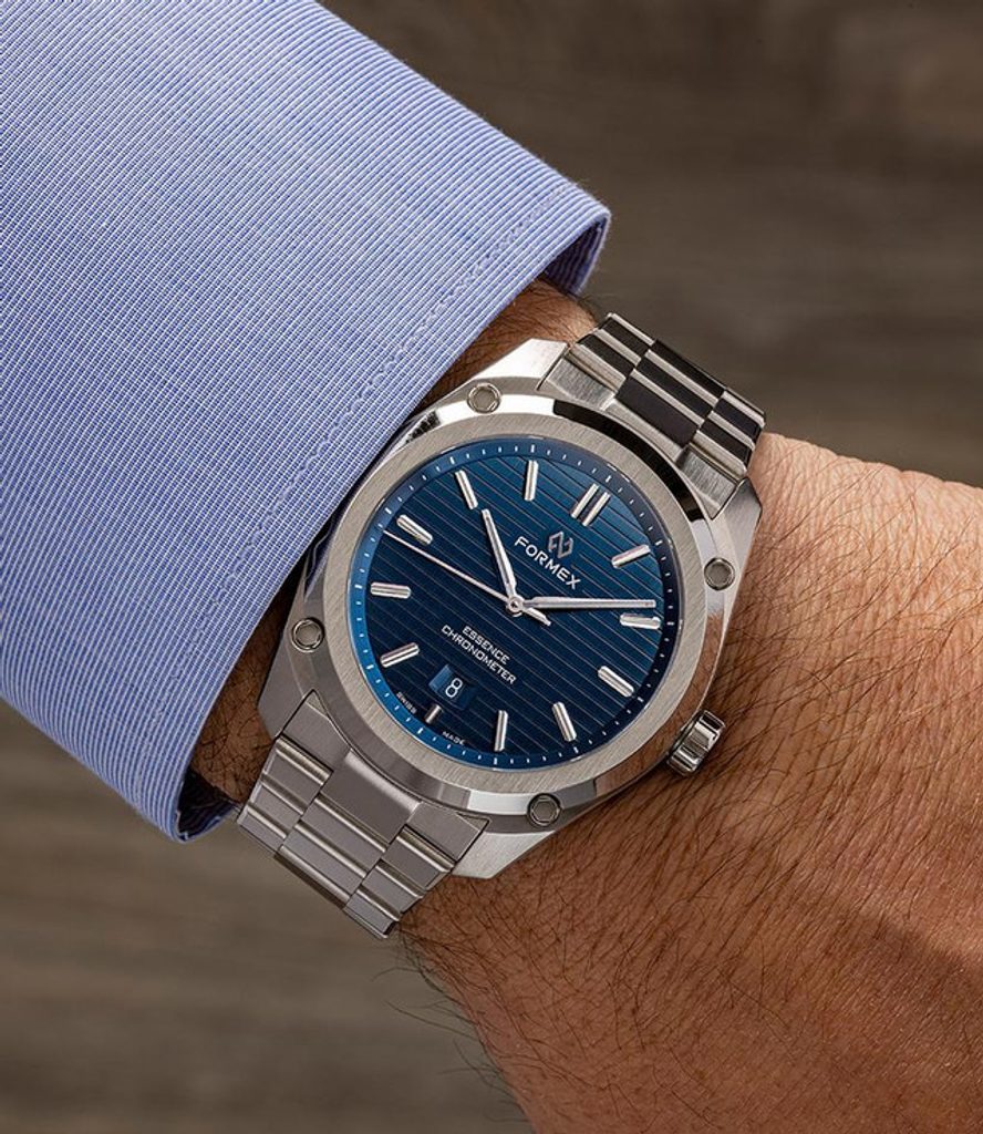 Švajčiarske hodinky Formex Essence FortyThree Automatic Chronometer Blue Steel Bracelet na prvý pohľad zaujmú výrazným kartáčovaným puzdrom s efektnými leštenými plochami a výrazne štruktúrovaným ciferníkom. Ide o moderný pohľad na univerzálne hodinky vhodné na každú príležitosť, ktoré sa vyznačujú jednoduchými líniami a skvelou prehľadnosťou. Vďaka celkovému súboru funkcií sú modely Formex Essence veľmi obľúbené u priaznivcov hodiniek.