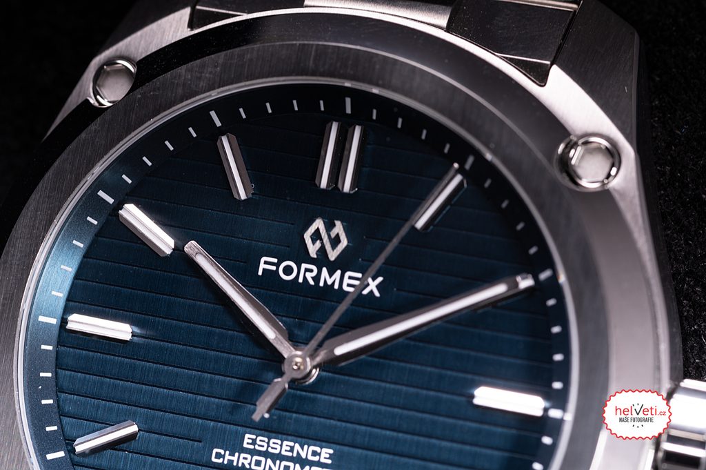 Medzi klasické poznávacie znaky hodiniek Formex Essence FortyThree Automatic Chronometer Blue patrí výrazný vrúbkovaný ciferník, systém zavesenia puzdra, vyššia vodotesnosť a jemná mikroregulovateľná spona. Prehľadný ciferník chráni zafírové sklíčko s vnútornou antireflexnou vrstvou a vysokou odolnosťou proti poškriabaniu. Zafír bol použitý aj na ciferník, cez ktorý možno pozorovať činnosť zdobeného strojčeka s modrými skrutkami. Lepšiu čitateľnosť za zhoršených svetelných podmienok zabezpečuje luminiscencia (BGW9 Super-LumiNova) umiestnená na ručičkách a indexoch. Práve ryhovaný ciferník a indexy vo vysokom lesku pôsobia veľmi zaujímavo. Celkový dojem podčiarkuje citlivo navrhnutý ukazovateľ dátumu na pozícii 6 hodín. Na hodinkách najviac oceníte ich všestrannosť; súbor funkcií ich predurčuje na použitie pri športe, vo vode, ale aj na každodenné používanie.