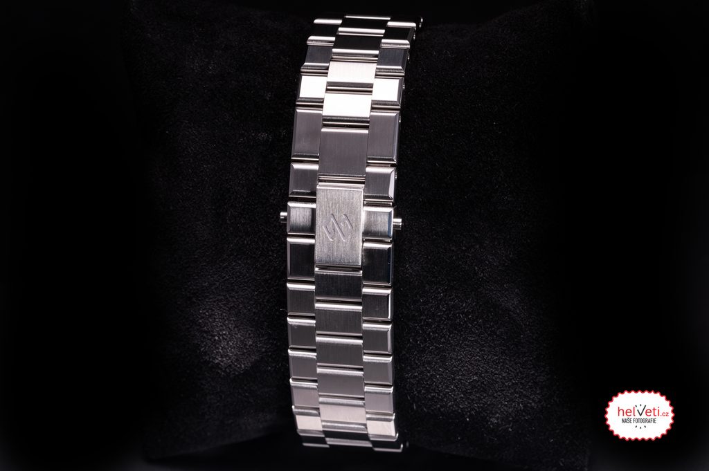Puzdro dopĺňa oceľový náramok ukončený motýľovým zapínaním, ktorý možno predĺžiť o 4 mm.