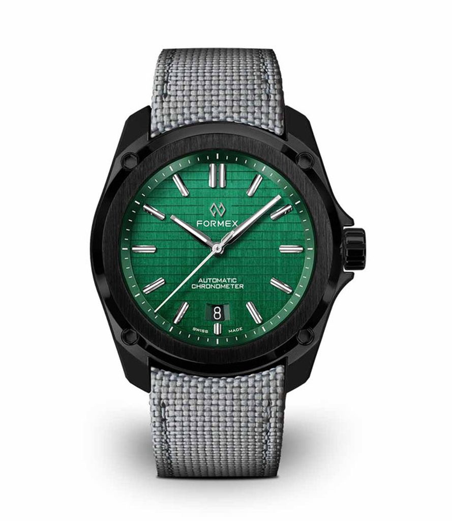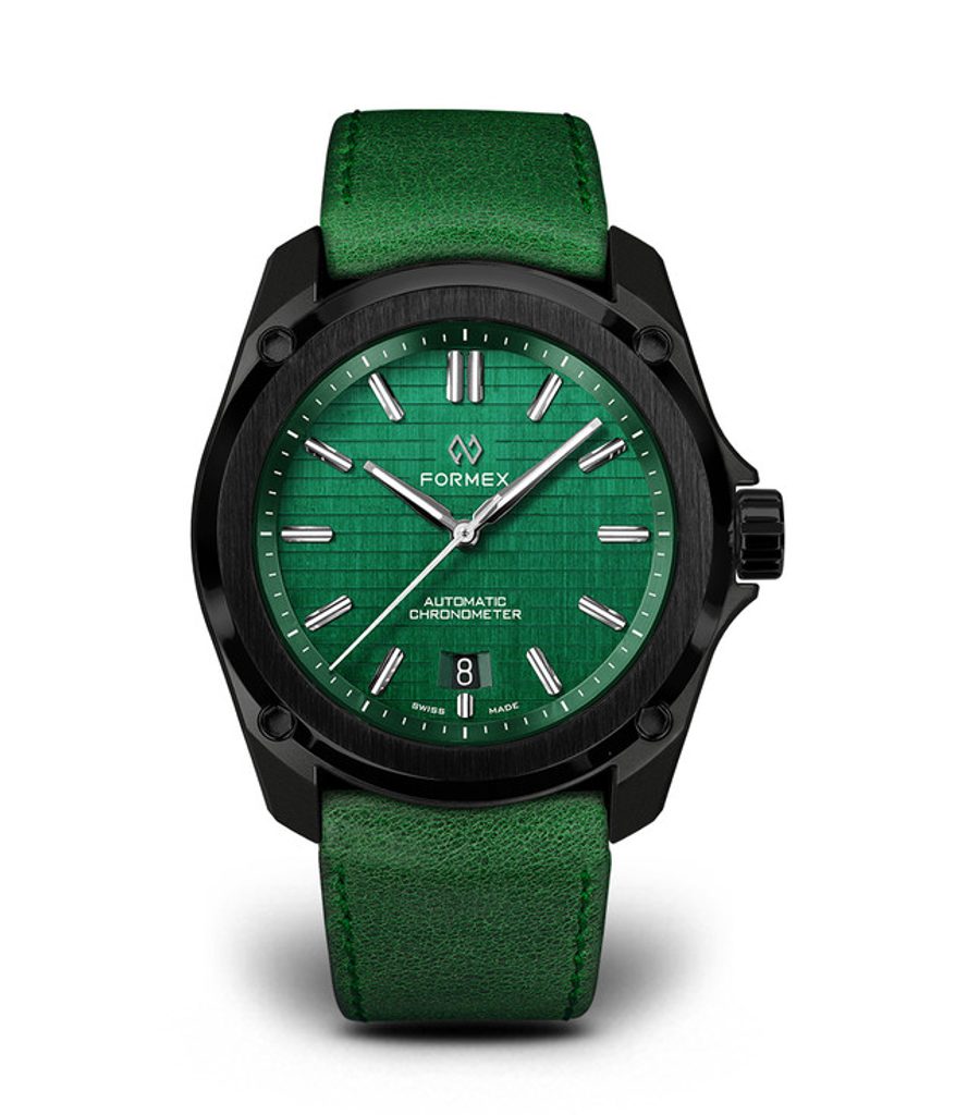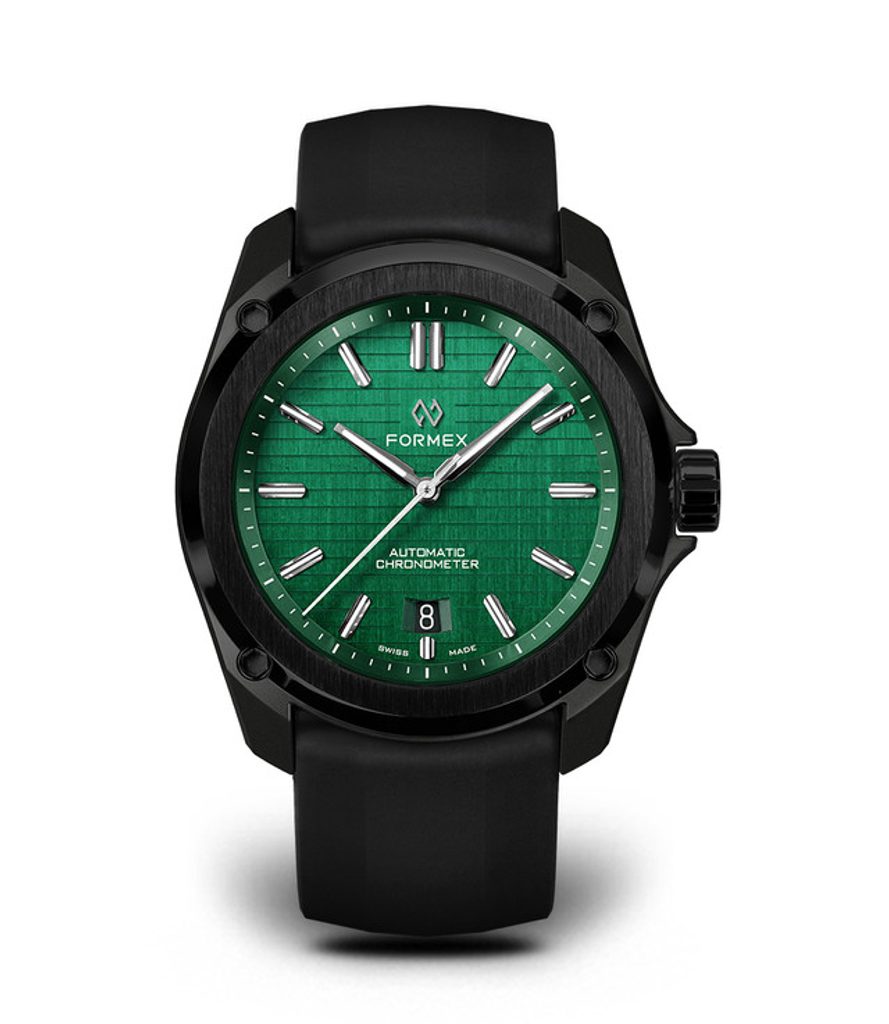 Švajčiarske hodinky Formex Essence Leggera FortyOne Automatic Chronometer Mabma Green na prvý pohľad zaujmú čiernym puzdrom s keramickou lunetou s efektným brúseným povrchom a výrazne štruktúrovaným ciferníkom. Je ideálnou voľbou pre všetkých priaznivcov hodiniek, ktorí sú fanúšikmi aktívneho životného štýlu aj modernej formy univerzálnych hodiniek vhodných na každú príležitosť, vyznačujúcich sa jednoduchými líniami a skvelou prehľadnosťou.