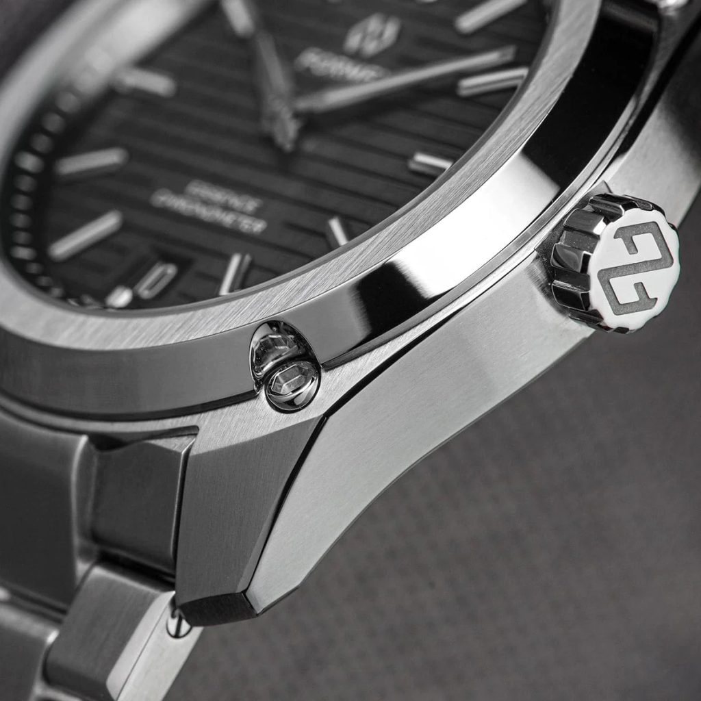 Švajčiarske hodinky Formex Essence ThirtyNine Automatic Chronometer Black na prvý pohľad zaujmú výrazným kartáčovaným puzdrom s efektnými leštenými plochami a výrazne štruktúrovaným ciferníkom. Ide o moderný pohľad na univerzálne hodinky vhodné na každú príležitosť, ktoré sa vyznačujú jednoduchými líniami a skvelou prehľadnosťou. Vďaka celkovému súboru funkcií sú modely Formex Essence veľmi obľúbené u priaznivcov hodiniek.