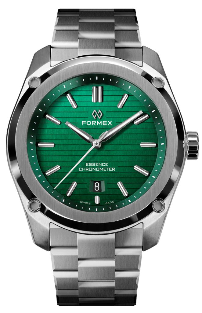 Švajčiarske hodinky Formex Essence ThirtyNine Automatic Chronometer Green Steel Bracelet na prvý pohľad zaujmú výrazným kartáčovaným puzdrom s efektnými leštenými plochami a výrazne štruktúrovaným ciferníkom. Ide o moderné poňatie univerzálnych hodiniek vhodných na každú príležitosť, s jednoduchými líniami a skvelou prehľadnosťou. Vďaka celkovému súboru funkcií sú modely Formex Essence veľmi obľúbené u priaznivcov hodiniek.