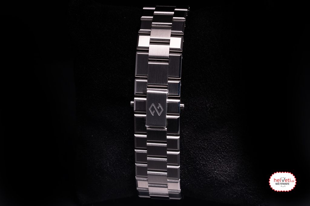 Puzdro dopĺňa oceľový náramok ukončený motýľovým zapínaním, ktorý možno predĺžiť o 4 mm.