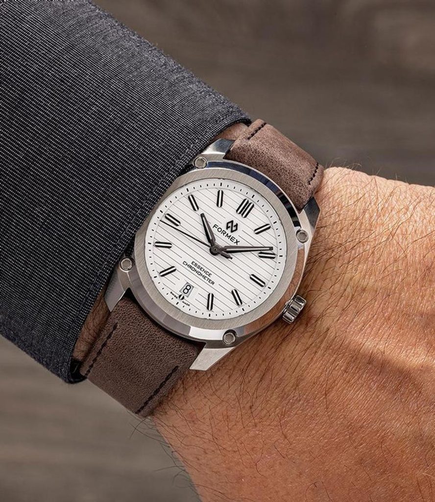Švajčiarske hodinky Formex Essence ThirtyNine Automatic Chronometer White na prvý pohľad zaujmú výrazným kartáčovaným puzdrom s efektnými leštenými plochami a výrazne štruktúrovaným ciferníkom. Ide o moderný pohľad na univerzálne hodinky vhodné na každú príležitosť, ktoré sa vyznačujú jednoduchými líniami a skvelou prehľadnosťou. Vďaka celkovému súboru funkcií sú modely Formex Essence veľmi obľúbené u priaznivcov hodiniek.