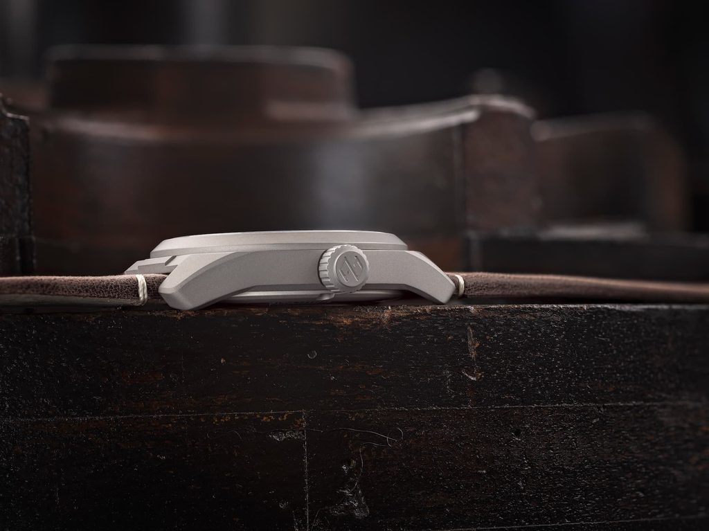 Puzdro hodiniek Formex Field Automatic Gen 2 Basalt Grey je vyrobené z titánu triedy 2 a pre zvýšenie odolnosti je vybavené špeciálnym kalením, ktoré zvyšuje povrchovú tvrdosť zo 145 Vickersov na približne 900 Vickersov. To všetko pri zachovaní nízkej hmotnosti, vysokého komfortu a hypoalergénnych vlastností titánu. Puzdro v základni dopĺňa čierny nylonový remienok na suchý zips, zakončený suchým zipsom. Voliteľne je možné dodaný remienok vymeniť.