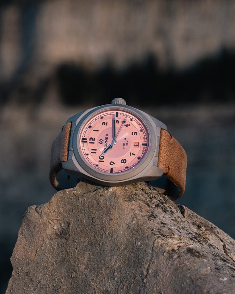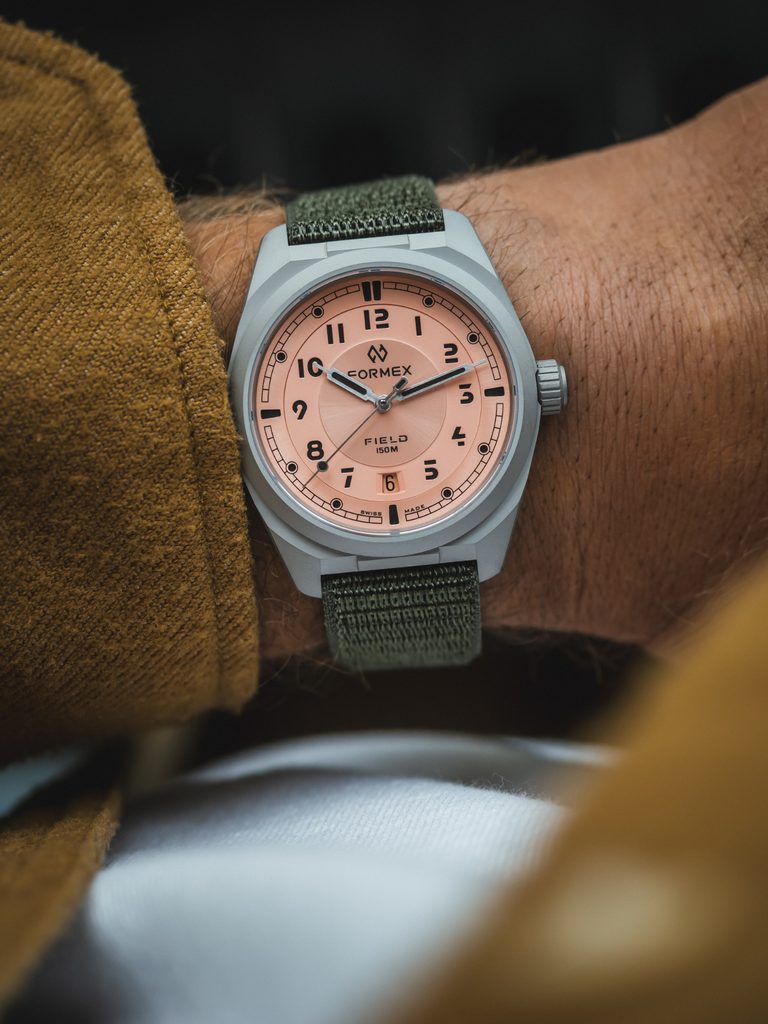 Švajčiarske hodinky Formex Field Automatic Gen 2 Coho Salmon Nylon-Velcro Khaki Green 0660.1.6555.877 stavajú na osvedčených základoch pôvodného modelu Field a predstavujú tri nové výrazné farby ciferníka - ľadovo modrú, čadičovo sivú a lososovú - v rovnakom ultraľahkom a mimoriadne odolnom 40 mm titánovom puzdre. Na prvý pohľad zaujmú nápadným matným puzdrom a výrazným ciferníkom. Ide o moderný pohľad na všestranné hodinky, ktoré sa vyznačujú čistotou a vynikajúcou prehľadnosťou, vďaka čomu si ich obľúbili nielen fanúšikovia hodiniek. Formex poteší všetkých priaznivcov hodiniek svojím detailným spracovaním.