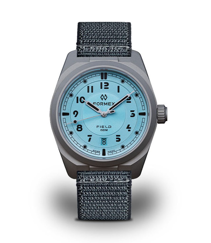 Švajčiarske hodinky Formex Field Automatic Gen 2 Ice Blue stavajú na osvedčených základoch pôvodného modelu Field a predstavujú tri nové výrazné farby ciferníka - ľadovo modrú, čadičovo sivú a lososovú - v rovnakom ultraľahkom a mimoriadne odolnom 40 mm titánovom puzdre. Na prvý pohľad zaujmú nápadným matným puzdrom a výrazným ciferníkom. Ide o moderný pohľad na všestranné hodinky, ktoré sa vyznačujú čistotou a vynikajúcou prehľadnosťou, vďaka čomu si ich obľúbili nielen priaznivci hodiniek. Formex poteší všetkých priaznivcov hodiniek svojím detailným spracovaním.