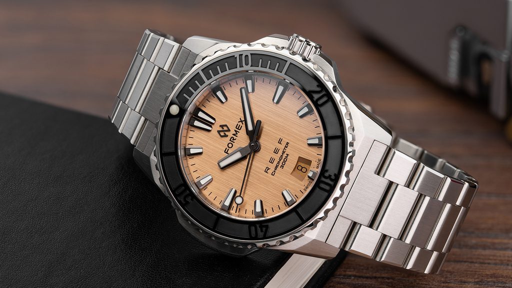 Švajčiarske potápačské hodinky Formex Reef 39.5 Automatic Chronometer Bronze Dial 2201.1.6382.100 zaujmú na prvý pohľad výrazným bronzovým ciferníkom a jasne rozpoznateľným puzdrom. Ide o moderný pohľad na potápačské hodinky vhodné na každú príležitosť, ktoré sa vyznačujú jednoduchými líniami, vysokou odolnosťou a vynikajúcou prehľadnosťou.