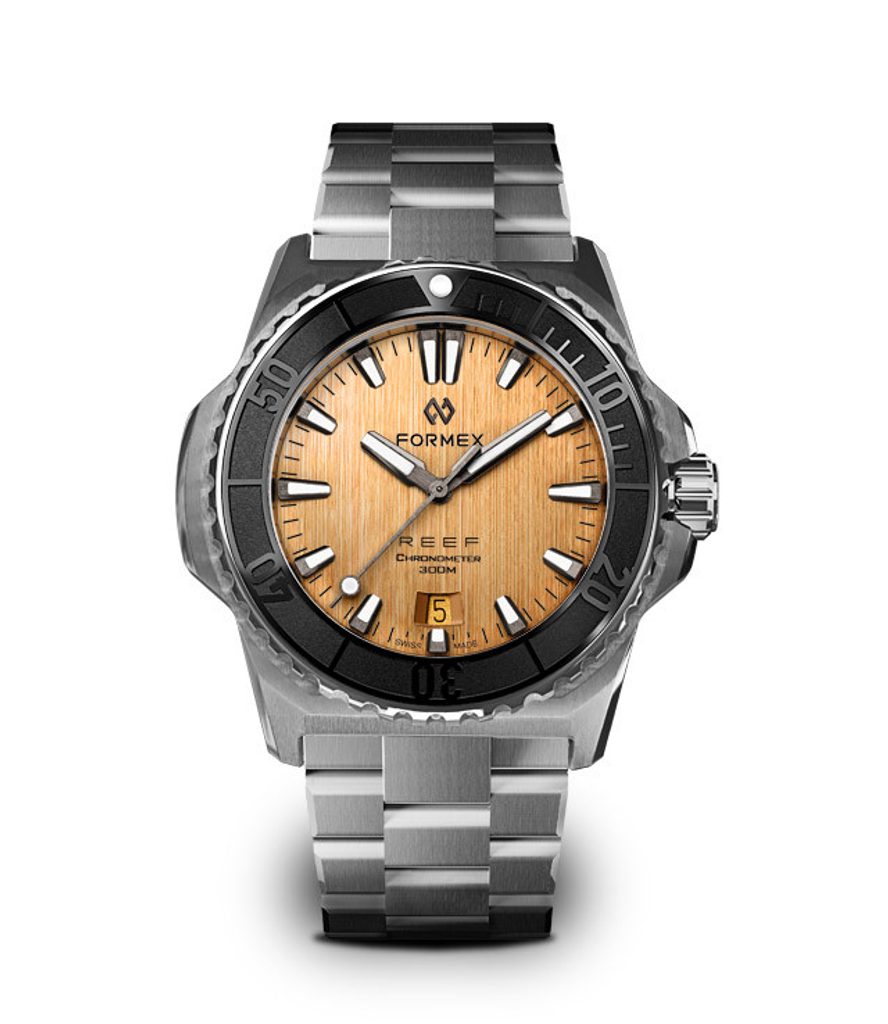 Medzi klasické charakteristické znaky hodiniek Formex Baby Reef patrí výrazný a ľahko čitateľný ciferník, vyššia vodotesnosť, jemná mikroregulovateľná spona a možnosť jednoduchej výmeny lunety. Prehľadný ciferník chráni zafírové sklíčko s vnútornou antireflexnou vrstvou a vysokou odolnosťou proti poškriabaniu. Lepšiu čitateľnosť za zhoršených svetelných podmienok zabezpečuje luminiscencia (BGW9 Super-LumiNova) umiestnená na ručičkách a indexoch. Ciferník z dielne Formex poteší slnečným kartáčovaným povrchom a tvarom ručne aplikovaných trojuholníkových indexov, ktoré sa zvažujú od okrajov smerom k stredu ciferníka. Celkový dojem umocňuje citlivo navrhnutá dátumovka na 6. hodine. Na hodinkách najviac oceníte ich všestrannosť; vďaka súboru funkcií sú ideálne na použitie pri športe, vo vode, ale aj na každodenné používanie.