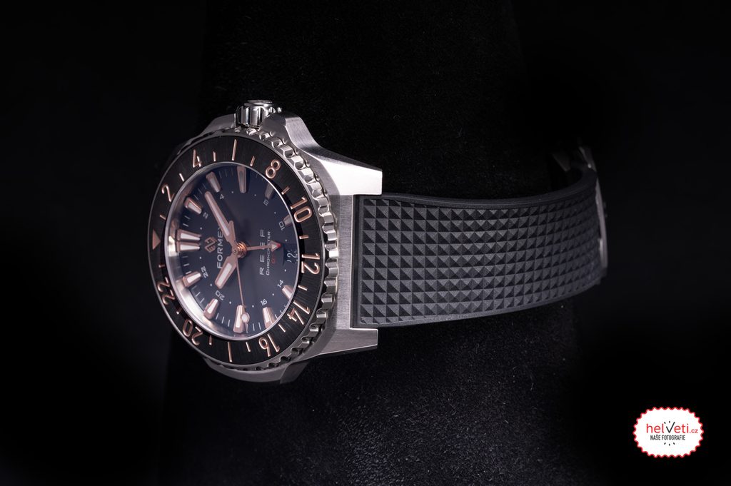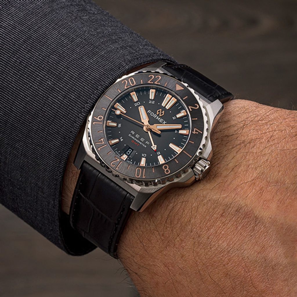 Medzi klasické charakteristické znaky hodiniek Formex Reef GMT Automatic Chronometer patrí výrazný a ľahko čitateľný ciferník, vyššia vodotesnosť a jemná mikroregulovateľná spona. Prehľadný ciferník chráni zafírové sklíčko s vnútornou antireflexnou vrstvou a vysokou odolnosťou proti poškriabaniu. Zafír bol použitý aj na ciferník, cez ktorý možno pozorovať činnosť zdobeného strojčeka s modrými skrutkami. Lepšiu čitateľnosť za zhoršených svetelných podmienok zabezpečuje luminiscencia (BGW9 Super-LumiNova) umiestnená na ručičkách a indexoch.