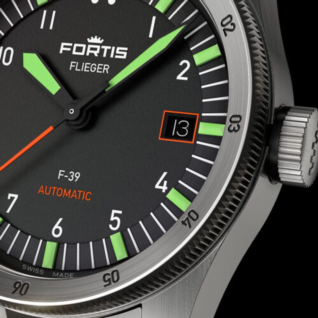 Švajčiarske hodinky Fortis Flieger F-39 Automatic F4220005 na prvý pohľad zaujmú typickým pilotným dizajnom s jasným podpisom značky Fortis. Zdobí ho dokonalá čistota, robustnosť a odolnosť. Tieto hodinky vám dobre poslúžia nielen v kokpite lietadla, ale aj pri každodennom nosení.