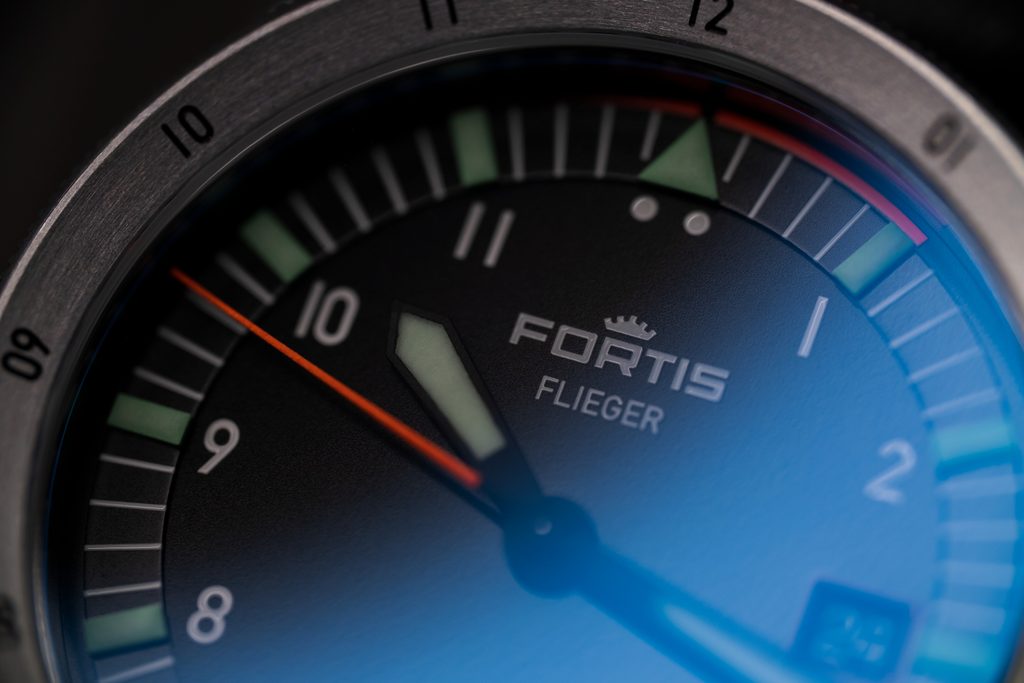 Dokonale prehľadný číselník je chránený zafírovým sklíčkom, ktoré je maximálne odolné voči poškriabaniu. Obojstranná antireflexná vrstva zaisťuje skvelú čitateľnosť aj na priamom slnku. Čitateľnosť za tmy a zhoršených svetelných podmienok potom umožňuje luminiscencia SuperLuminova, umiestnená na ručičkách a indexoch. Pod UV svetlom je potom viditeľná funkcia Synchroline® na pozícii 12.hodiny, ktorá uľahčuje pilotom synchronizáciu času so svojimi kolegami v rozsahu ±5 sekúnd. Vodeodolnosť tohto modelu je 200m, zvládne teda aj väčší kontakt s vodou, ako je plávanie či ponor do cca 20 metrov. Vodeodolnosť je podporená skrutkovacou korunkou.