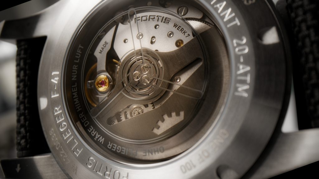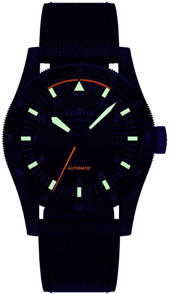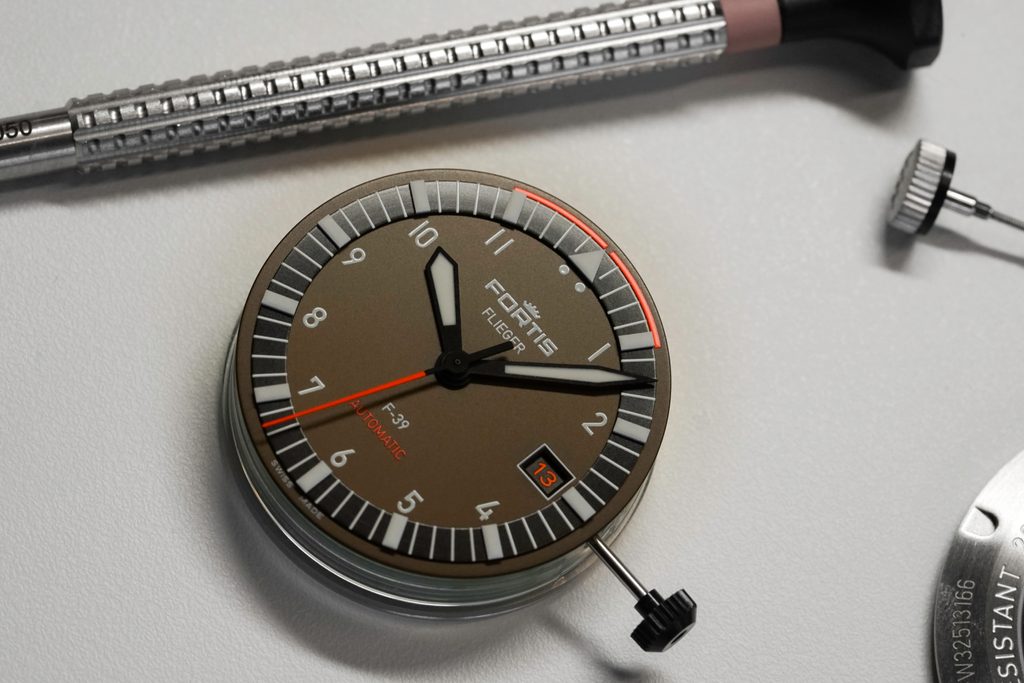 Hodinky Fortis Flieger F-39 Werk 7 Tactical Green Limited Edition F4220029 majú puzdro z recyklovanej ušľachtilej ocele s DLC úpravou, ktoré dopĺňa gumovo-nylonový remienok. V puzdre je spoľahlivo uložený švajčiarsky mechanický strojček Manufacture Fortis WERK 7 (vyrobený pre Fortis v spolupráci s manufaktúrou La Joux-Perret) s automatickým naťahovaním. Pracuje s frekvenciou 28 800 polfrekvencií za hodinu, má 24 drahokamov a predovšetkým predĺženú rezervu chodu na 70 hodín. Strojček má aj funkciu "hacking" (zastavenie sekundovej ručičky na príkaz) a možnosť ručného naťahovania korunkou. Na pozícii 3 hodín nájdeme praktický ukazovateľ dátumu. Obojstranná luneta GMT umožňuje odčítanie času v nasledujúcom časovom pásme.