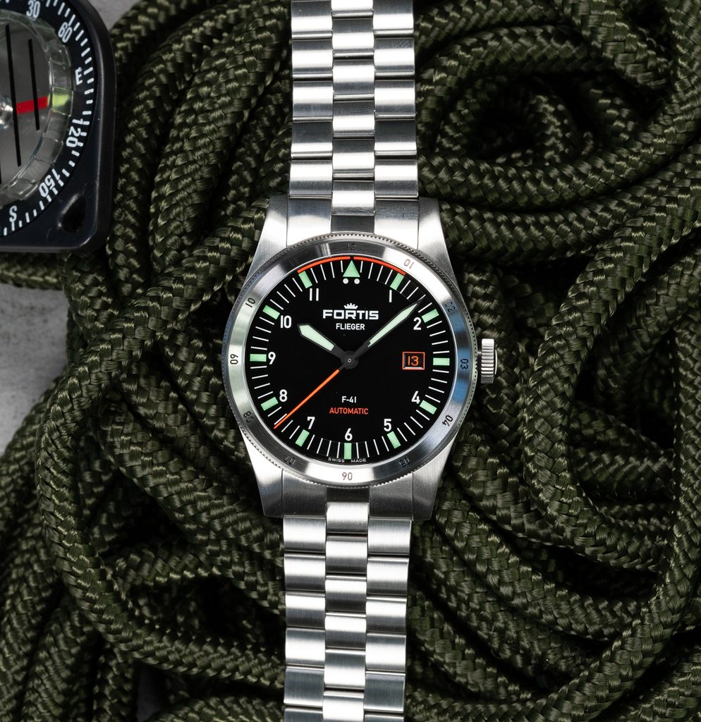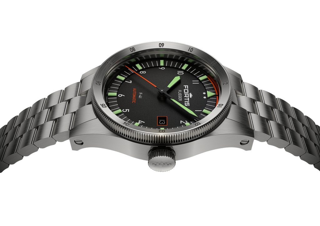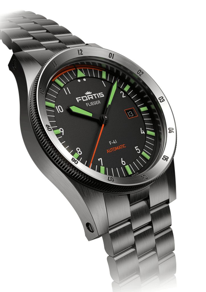Švajčiarske hodinky Fortis Flieger F-41 Automatic F4220008 na prvý pohľad zaujmú typickým pilotným dizajnom s jasným rukopisom značky Fortis. Zdobí ich dokonalá prehľadnosť, robustnosť a odolnosť. Tieto hodinky skvele poslúžia nielen v kokpite lietadla, ale aj pri každodennom nosení.