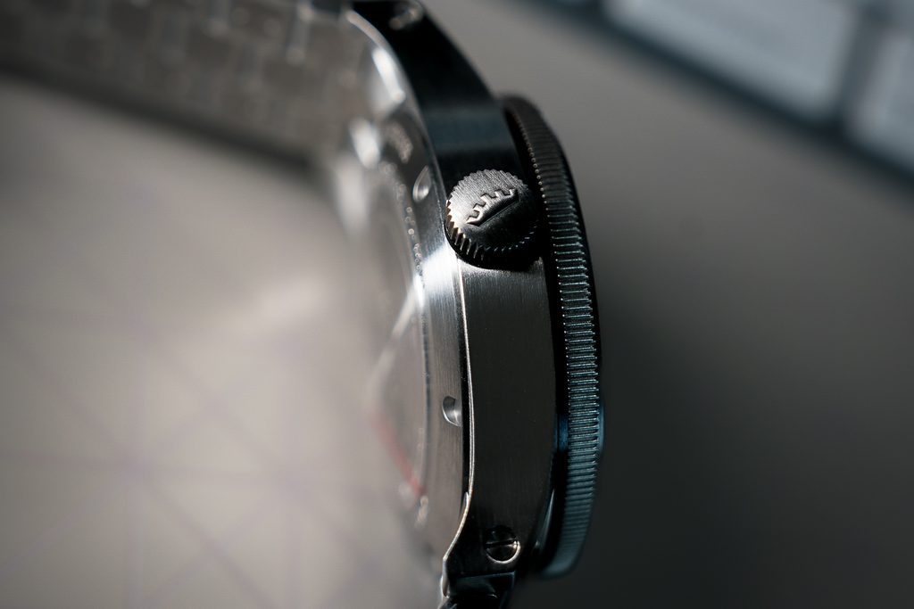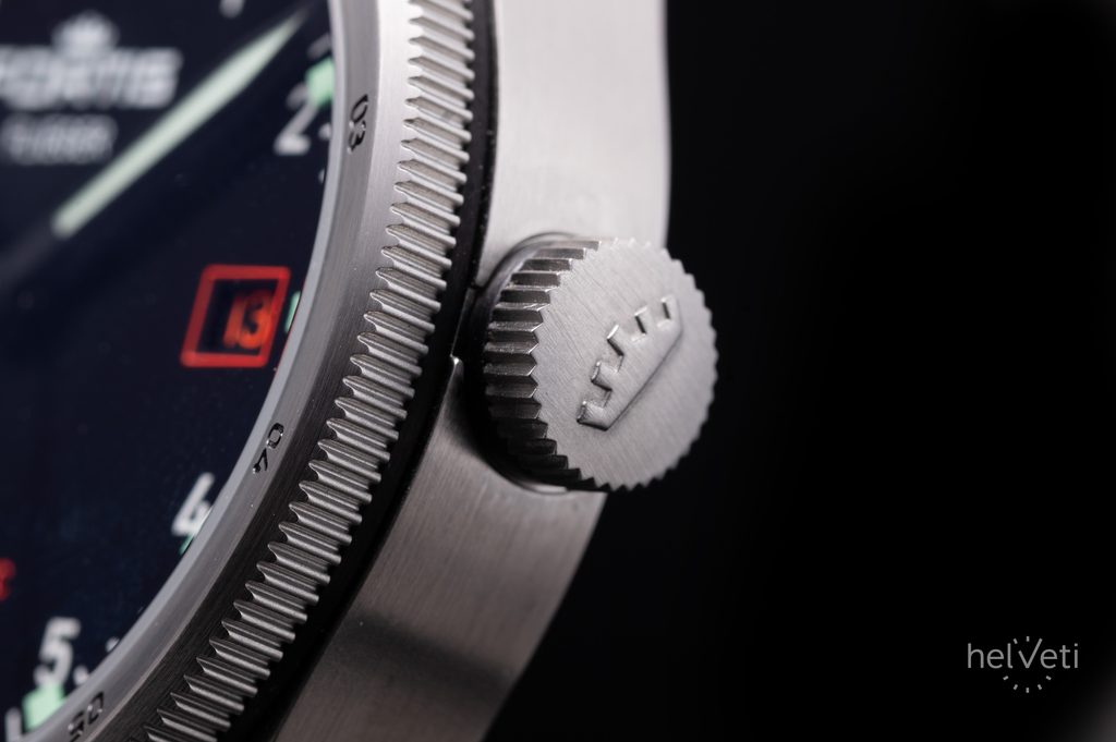 Dokonale prehľadný číselník je chránený zafírovým sklíčkom, ktoré je maximálne odolné voči poškriabaniu. Obojstranná antireflexná vrstva zaisťuje skvelú čitateľnosť aj na priamom slnku. Čitateľnosť za tmy a zhoršených svetelných podmienok potom umožňuje luminiscencia SuperLuminova, umiestnená na ručičkách a indexoch. Pod UV svetlom je potom viditeľná funkcia Synchroline® na pozícii 12.hodiny, ktorá uľahčuje pilotom synchronizáciu času so svojimi kolegami v rozsahu ±5 sekúnd. Vodeodolnosť tohto modelu je 200m, zvládne teda aj väčší kontakt s vodou, ako je plávanie či ponor do cca 20 metrov. Vodeodolnosť je podporená skrutkovacou korunkou.