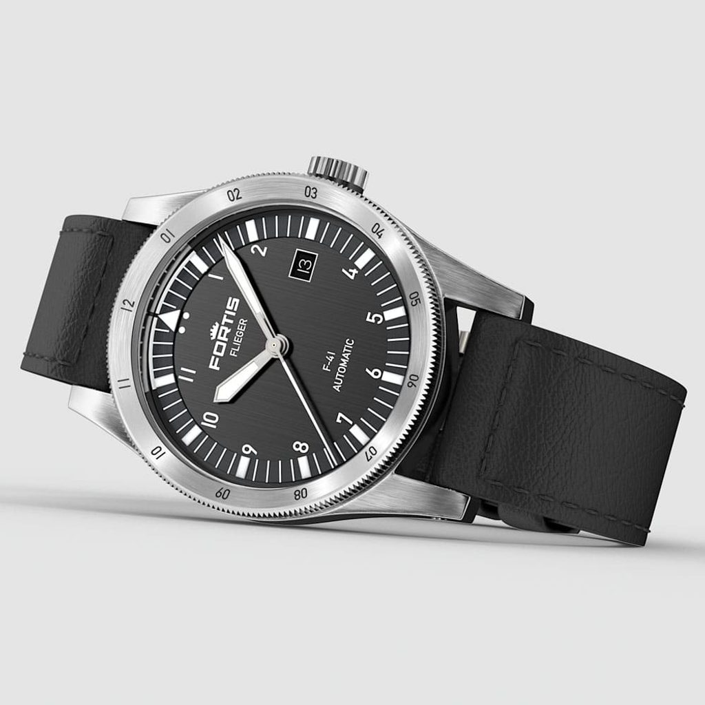 Švajčiarske hodinky Fortis Flieger F-41 Black F4220018 na prvý pohľad zaujmú typickým pilotným dizajnom s jasným podpisom značky Fortis. Zdobí ho dokonalá prehľadnosť, robustnosť a odolnosť. Tieto hodinky vám dobre poslúžia nielen v kokpite lietadla, ale aj pri každodennom nosení.