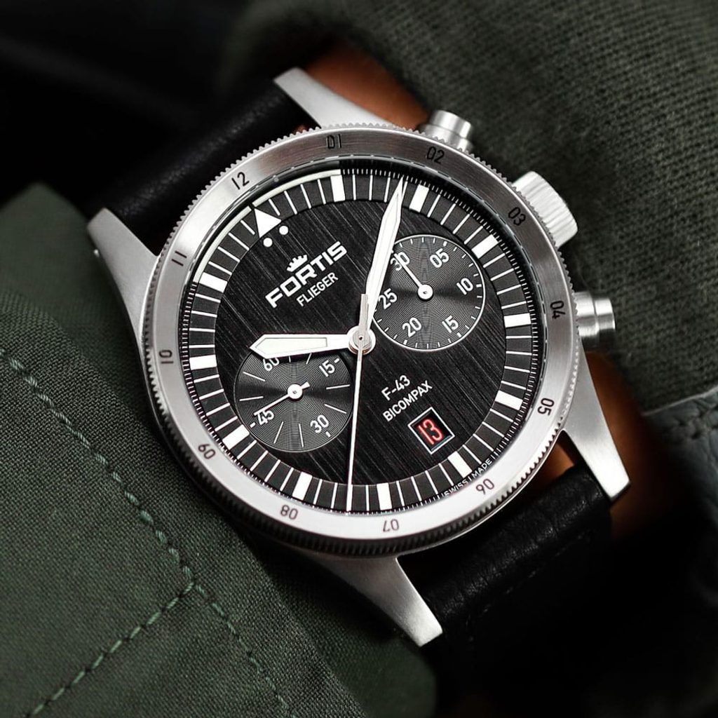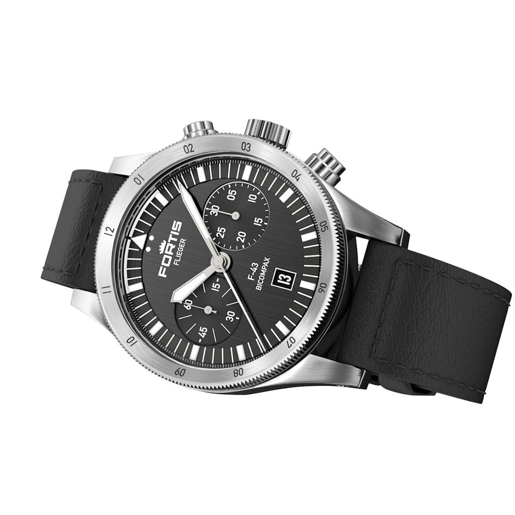 Švajčiarske hodinky Fortis Flieger F-43 Bicompax Black F4240007 na prvý pohľad zaujmú typickým pilotným dizajnom s jasným podpisom Fortis. Zdobí ho dokonalá prehľadnosť, robustnosť a odolnosť. Tieto hodinky vám dobre poslúžia nielen v kokpite lietadla, ale aj pri každodennom nosení.