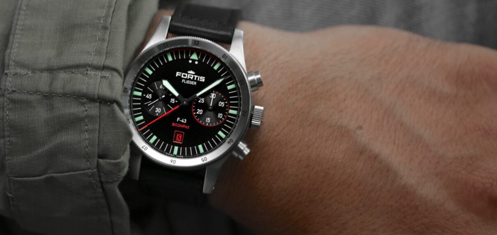 Švajčiarske hodinky Fortis Flieger F-43 Bicompax F4240005 na prvý pohľad zaujmú typickým pilotným dizajnom s jasným podpisom Fortis. Vyznačuje sa dokonalou čistotou, robustnosťou a odolnosťou. Tieto hodinky vám dobre poslúžia nielen v kokpite lietadla, ale aj pri každodennom nosení.