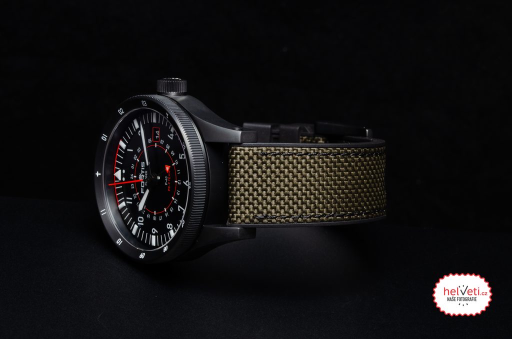 Hodinky Fortis Flieger F-43 Triple-GMT PC-7 TEAM Limited Edition COSC F4260004 majú puzdro vyrobené z titánu s povrchovou úpravou DLC, ktoré dopĺňa gumovo-nylonový remienok. Súčasťou balenia je aj červený nylonový remienok s dodatočným logom skupiny PC-7. V puzdre je spoľahlivo uložený strojček švajčiarskej mechanickej výroby Fortis WERK 13 (vyrobený pre Fortis spoločnosťou Kenissi) s automatickým náťahom. Pracuje s frekvenciou 28 800 polfrekvencií za hodinu, má 28 drahokamov a predovšetkým predĺženú rezervu chodu na 70 hodín. Strojček má aj funkciu "hacking" (zastavenie sekundovej ručičky na príkaz) a možnosť ručného naťahovania korunky. Najmä cestovatelia ocenia funkciu GMT - teda ukazovateľ druhého časového pásma v podobe štvrtej ručičky. Navyše ide o takzvaný True GMT, pri ktorom sa ručička GMT pohybuje spolu s nastavením času a nastavenie hlavnej hodinovej ručičky potom prebieha skokovo po jednej hodine, pričom domáci čas na ručičke GMT zostáva nezmenený. Obojstranná luneta GMT umožňuje odčítanie času v ďalšom časovom pásme. Na pozícii 3 hodín nájdeme praktický ukazovateľ dátumu.