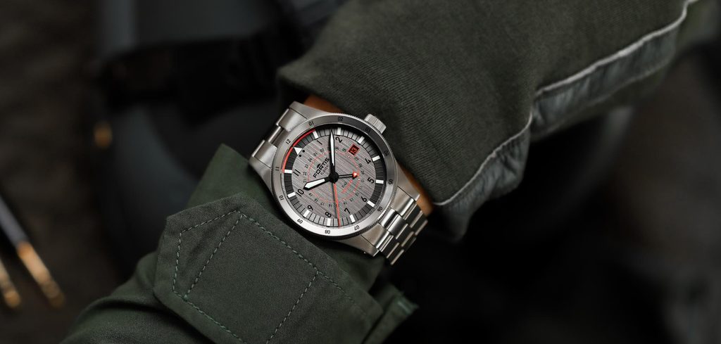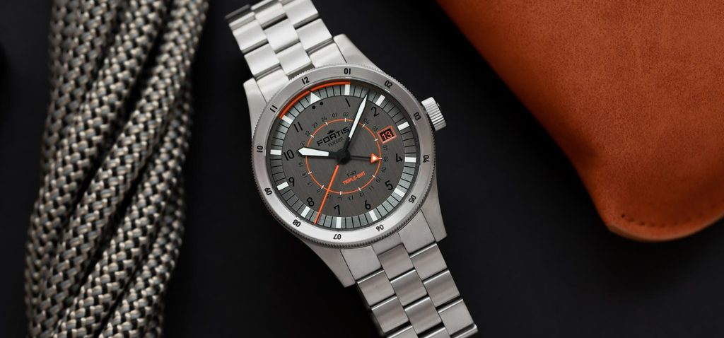 Švajčiarske hodinky Fortis Flieger F-43 Triple-GMT Titanium Orange COSC F4260002 na prvý pohľad zaujmú typickým pilotným dizajnom s jasným podpisom Fortis. Zdobí ho dokonalá prehľadnosť, robustnosť a odolnosť. Tieto hodinky vám dobre poslúžia nielen v kokpite lietadla, ale aj pri každodennom nosení.