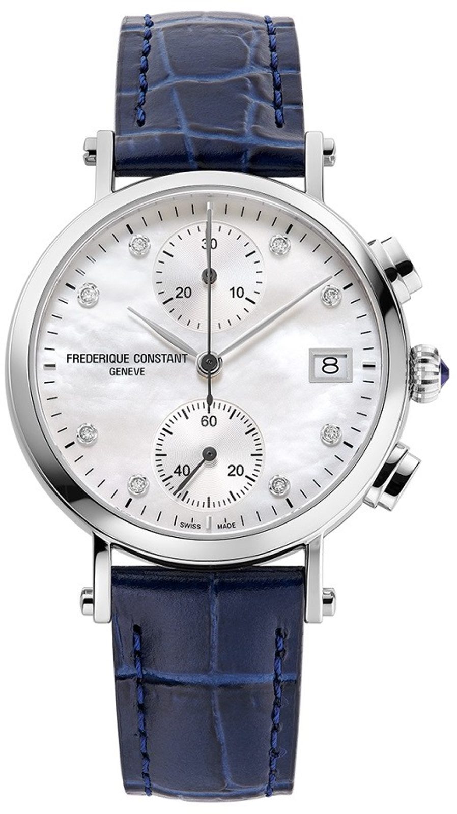 Hodinky Frederique Constant Classics Chronograph Ladies Quartz FC-291MPWD2R6 patria do série Classics a vďaka svojmu elegantnému vzhľadu sú vhodné ako doplnok do spoločnosti. Je však ideálny aj na každodenné nosenie.