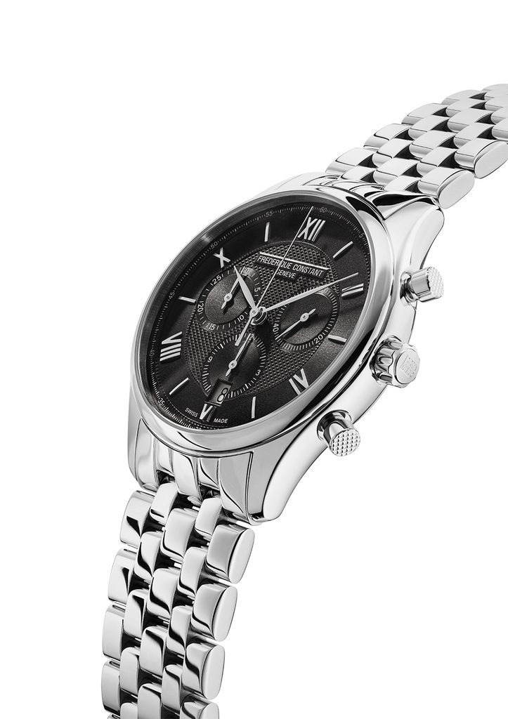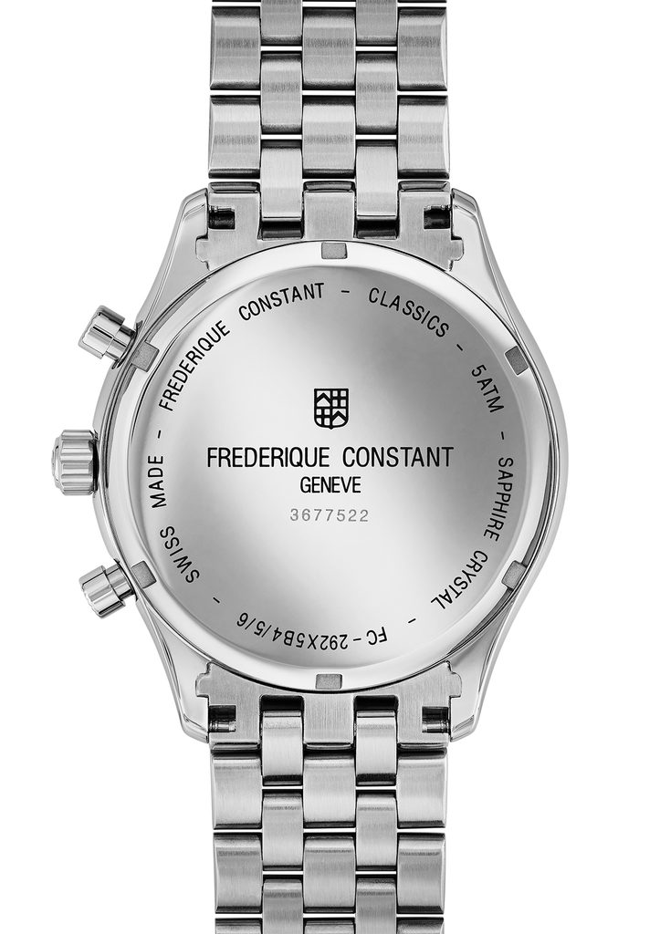 Puzdro hodiniek Frederique Constant FC-292MG5B6B je vyrobené z ušľachtilej ocele, rovnako ako náramok. Vo vnútri puzdra spoľahlivo pracuje švajčiarsky batériový strojček FC-292 (na báze Ronda 5030D) s trinástimi drahokamami. Má funkciu stopiek a praktický ukazovateľ dátumu na pozícii šiestich hodín.