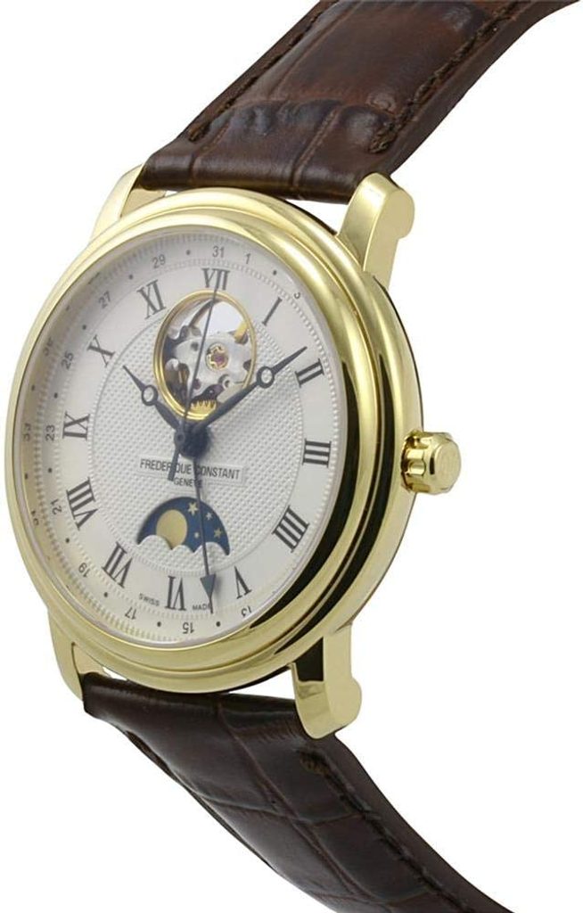 Hodinky Frederique Constant Classics Heart Beat Moonphase Date Automatic FC-335MC4P5 patria do série Classics a vďaka svojmu elegantnému vzhľadu sú vhodné ako doplnok do spoločnosti. Hodinky sú však ideálne aj na každodenné nosenie. Dizajn Heart Beat poskytuje priehľadný ciferník na zotrvačníku. Tento dizajn je pre značku Frederique Constant typický už od jej začiatkov.
