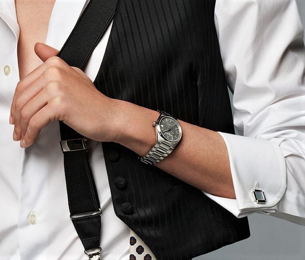 Elegantný a zároveň prehľadný ciferník s jemným motívom zemegule chráni zafírové sklíčko, ktoré je mimoriadne odolné proti poškriabaniu. Antireflexná vrstva zaručuje vynikajúcu čitateľnosť aj na prudkom slnečnom svetle. Vodotesnosť tohto modelu je 50 m (5 ATM), takže zvládne základný kontakt s vodou, napríklad dážď alebo sprchu.